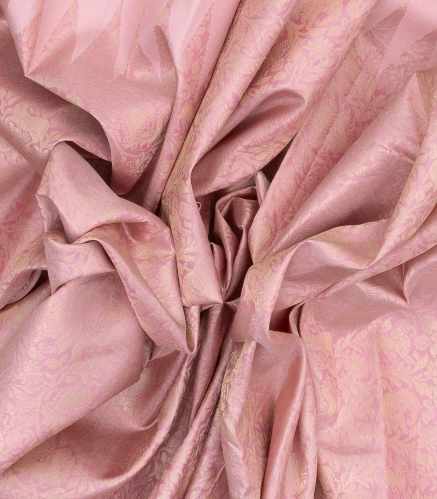 Light Peach Handloom Korvai Kanchipuram Silk Saree With Vanasingaram Rising Border-KA12358