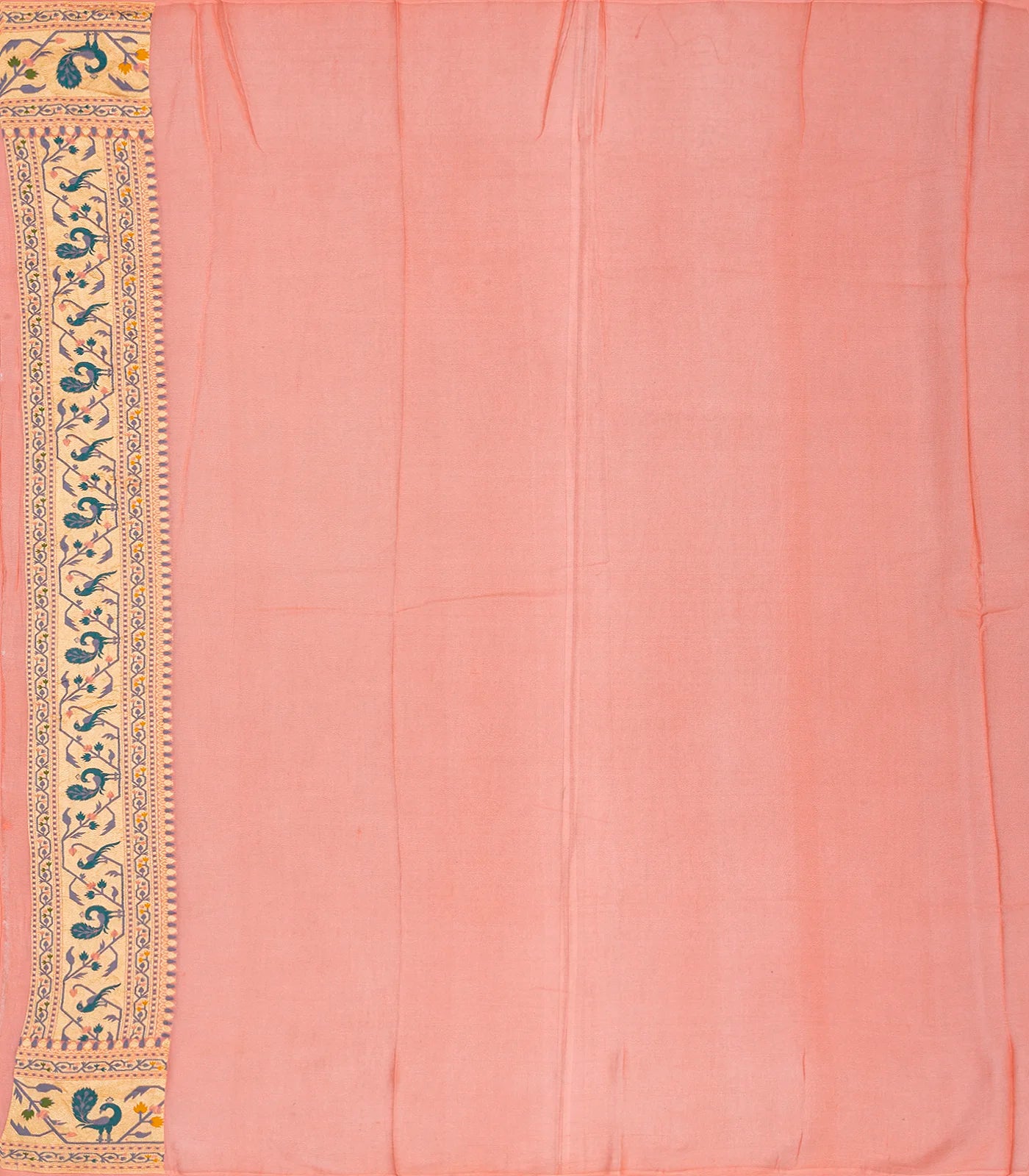 Light Peach Handwoven Banarasi Khaddi Georgette Silk Saree With Peacock Motifs