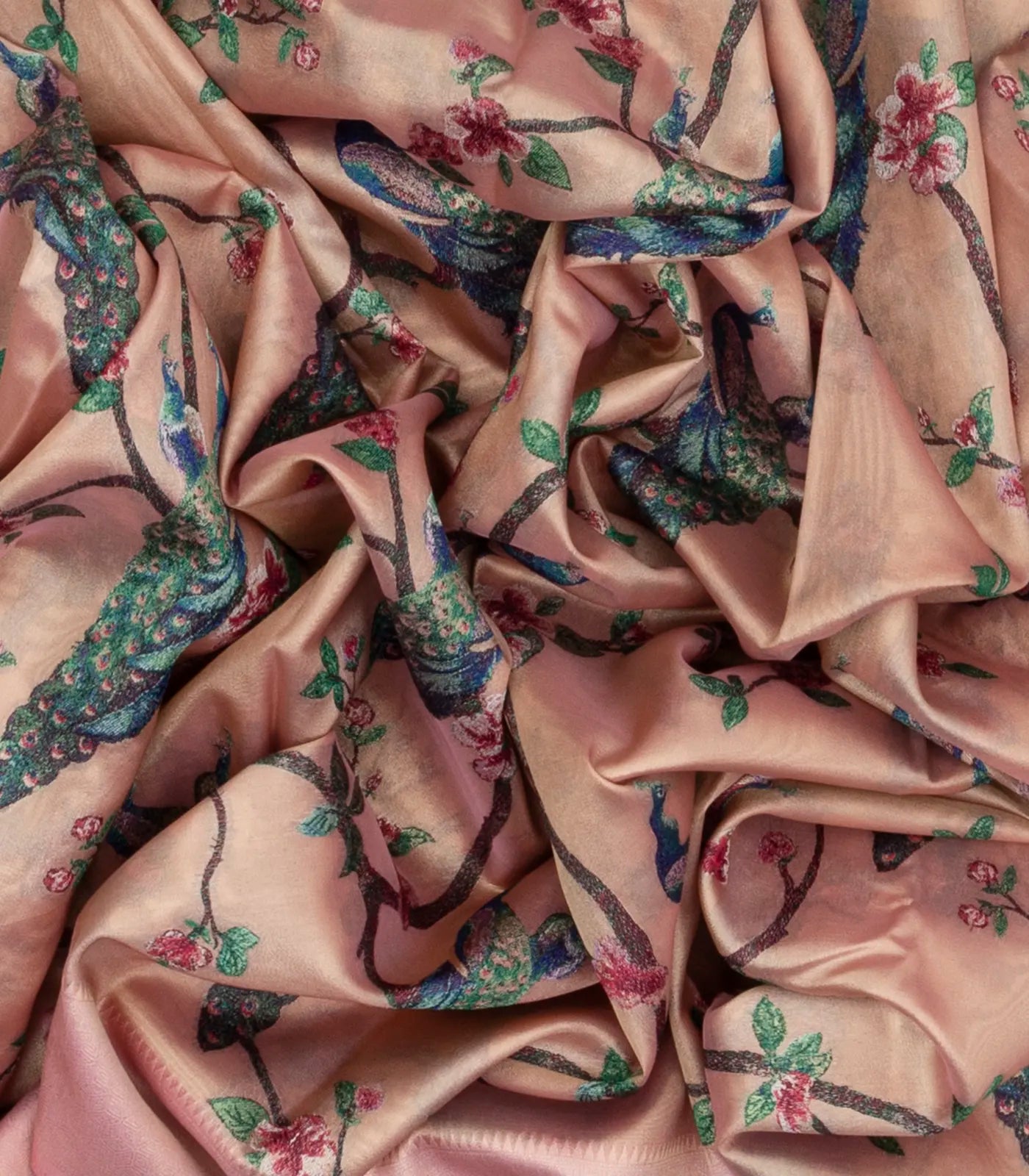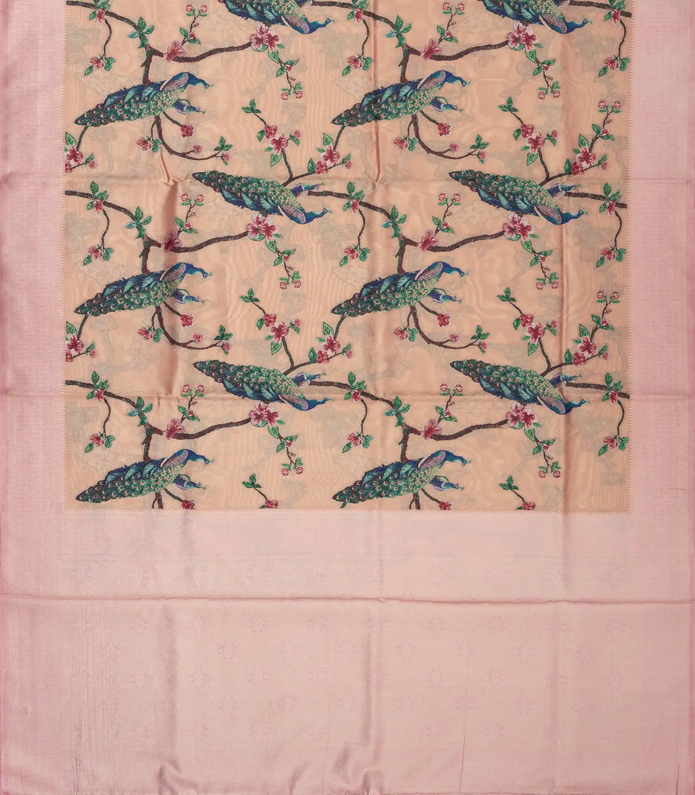 Light Peach Woven Blended Soft Silk With Digital Thread Work Peacock motifs-BL3548