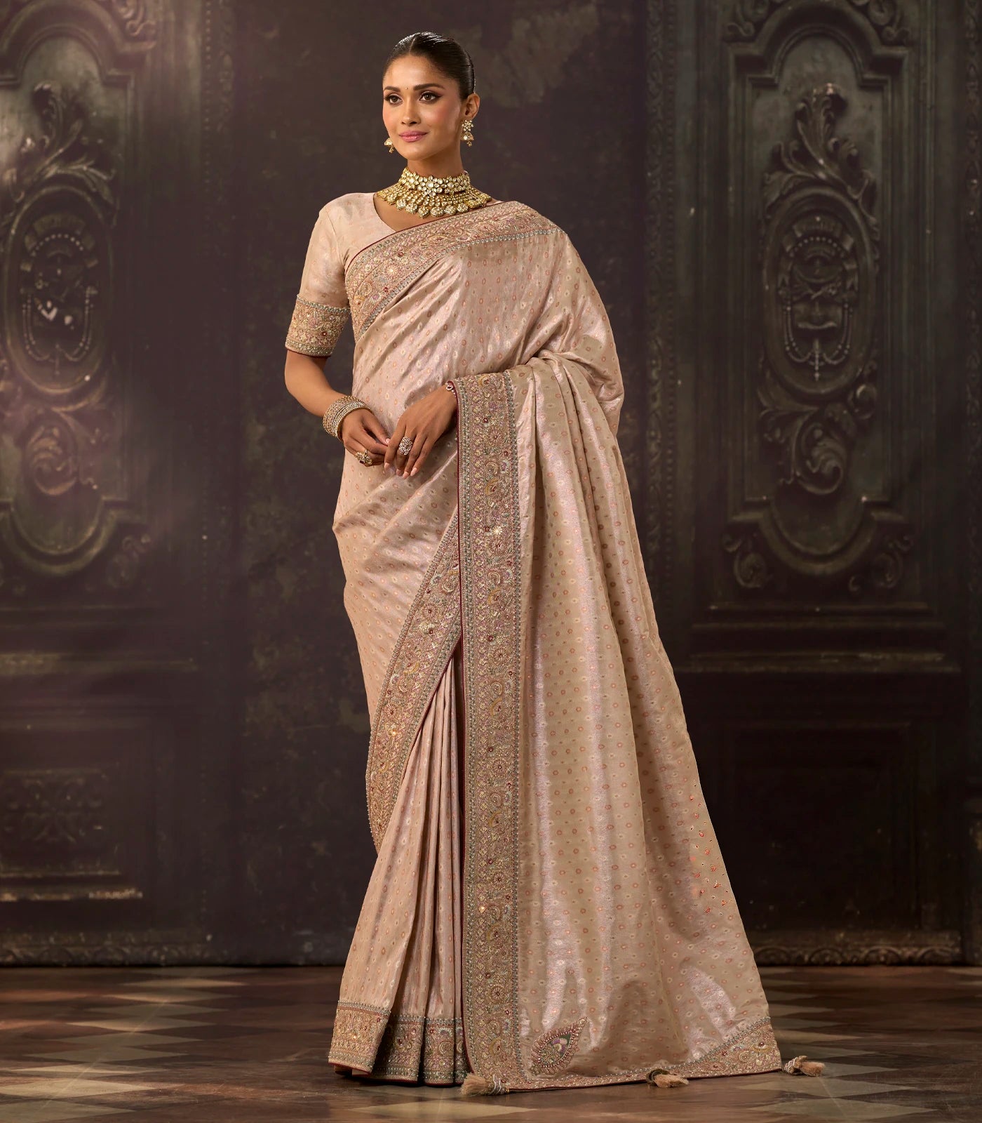 Light Peach Woven Blened Tissue Saree With Heavy Zarodsi Work-BL4060