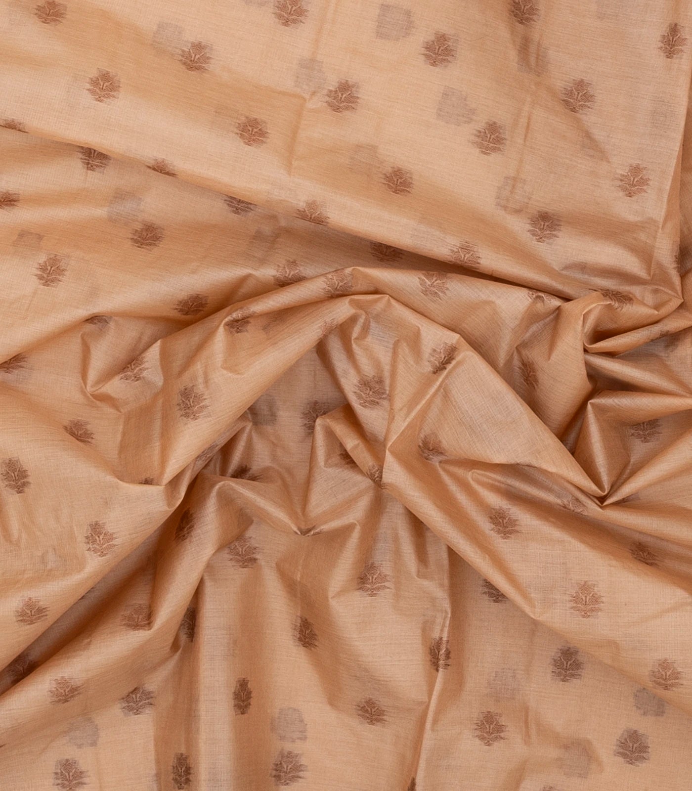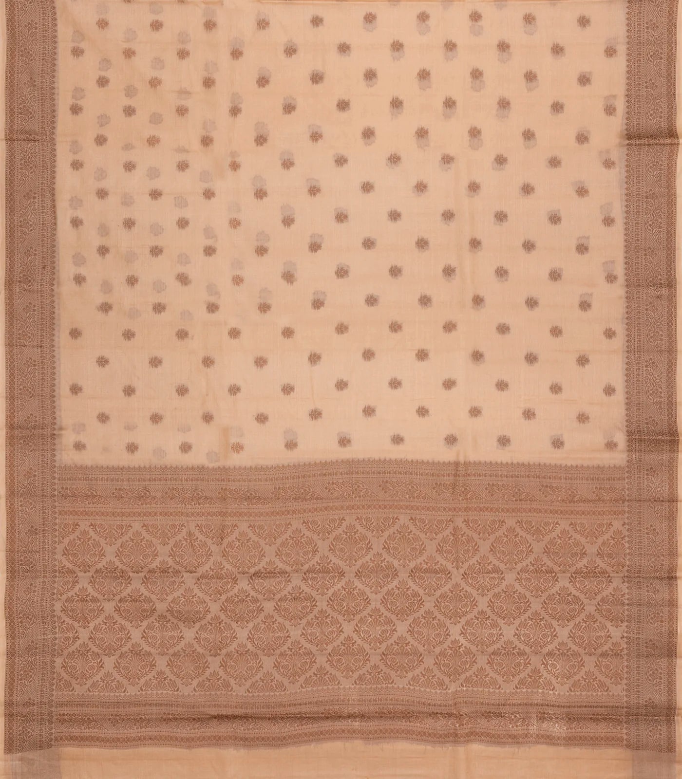 Light Peach Woven Tussar Silk Saree With Floral Motifs-TU3141