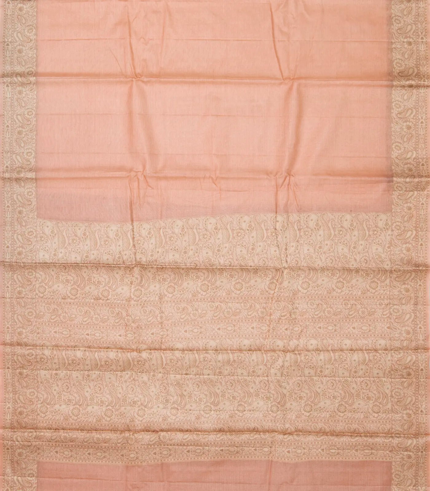 Light Peach Woven Tussar Silk Saree With Meena Floral Border-TU2972