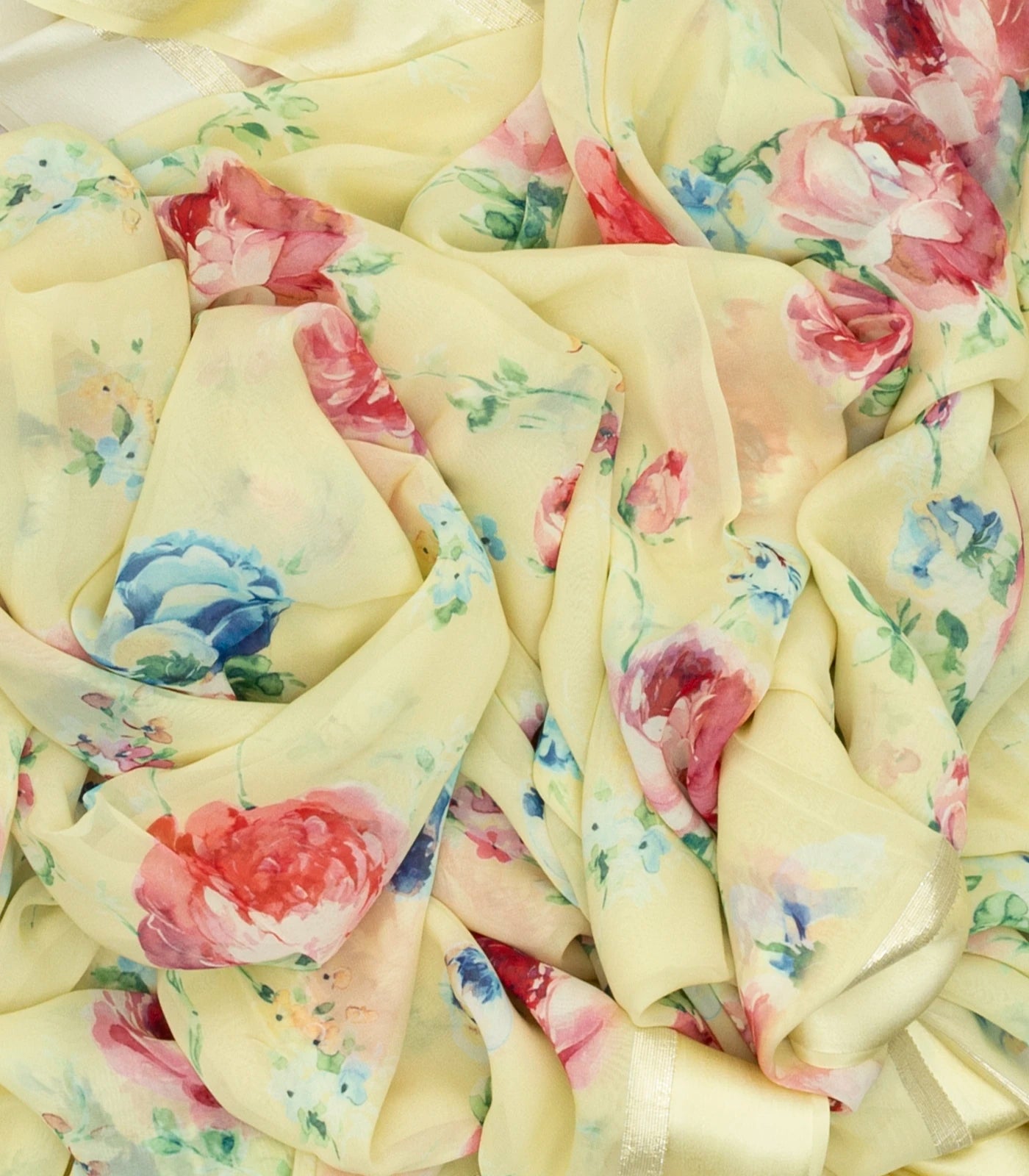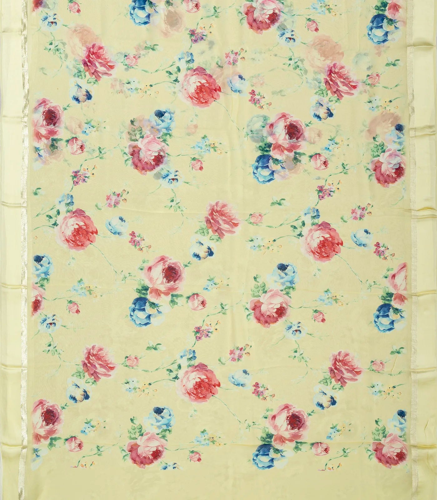 Light Yellow Woven Georgette Saree With Printed Floral Motifs-PS0509