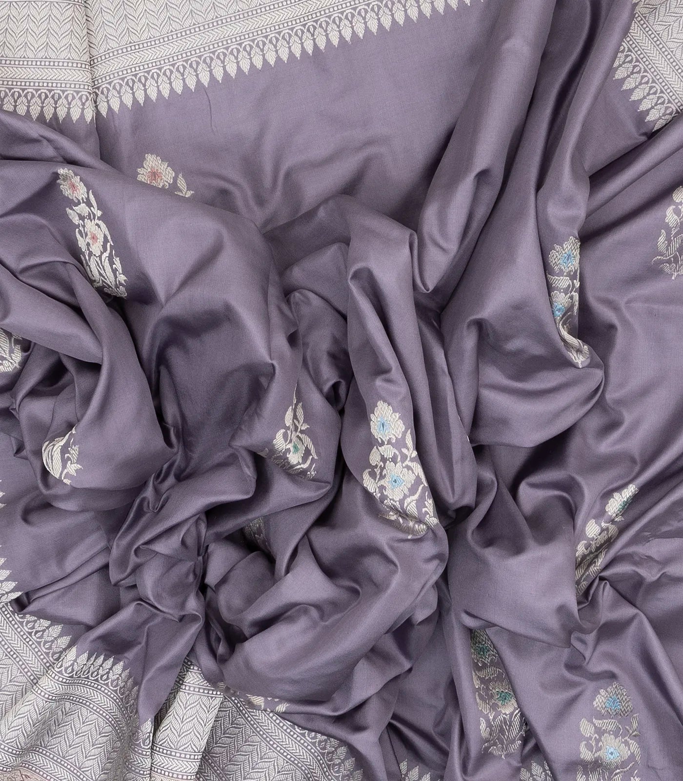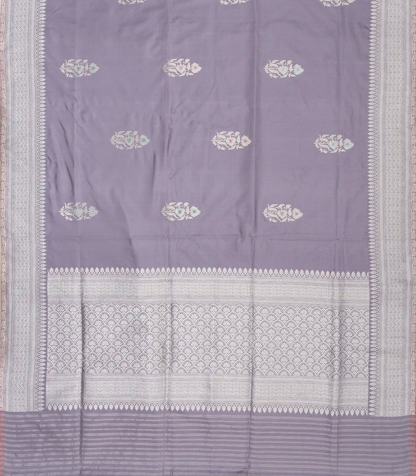 Lilac Handloom Banarasi Ektara Weaving Silk Saree With Floral Buttas-BE1364