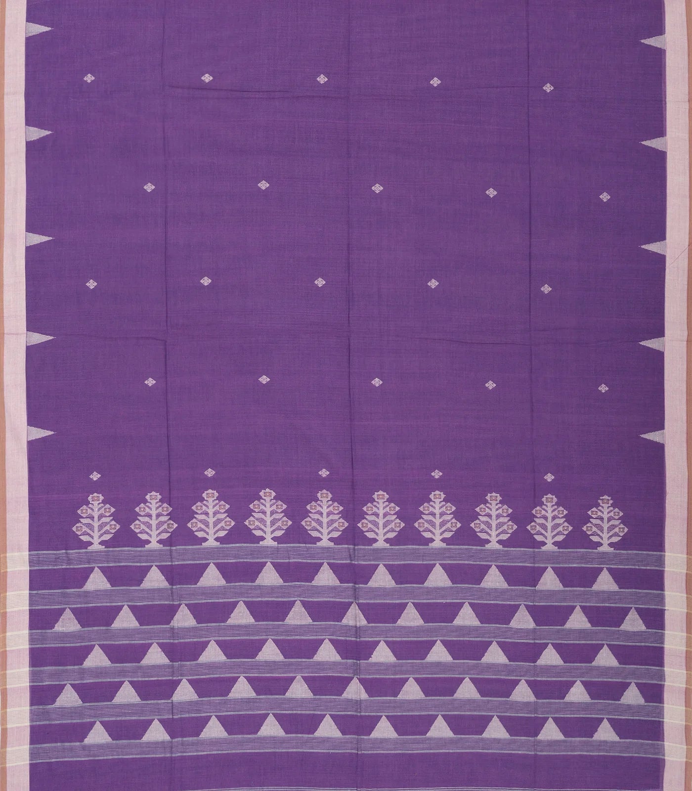 Lilac Handloom Bengal Cotton Saree With Buttas & Temple Border-BG1337