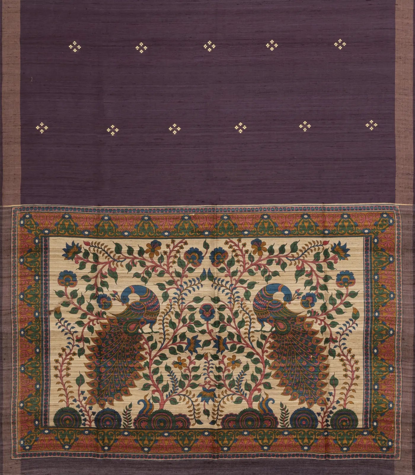 Lilac Handloom Dupion Silk Saree With Buttas & Printed Pallu-DS0556
