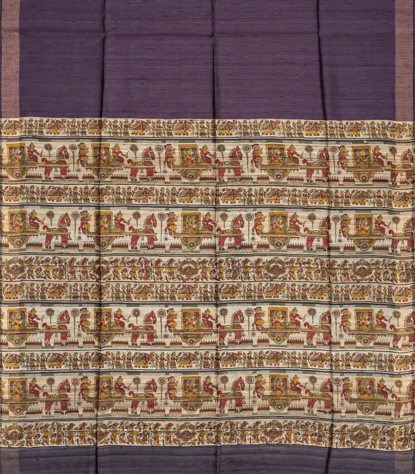 This handwoven dupion silk saree is filled with plain lilac body along with border and printed pallu