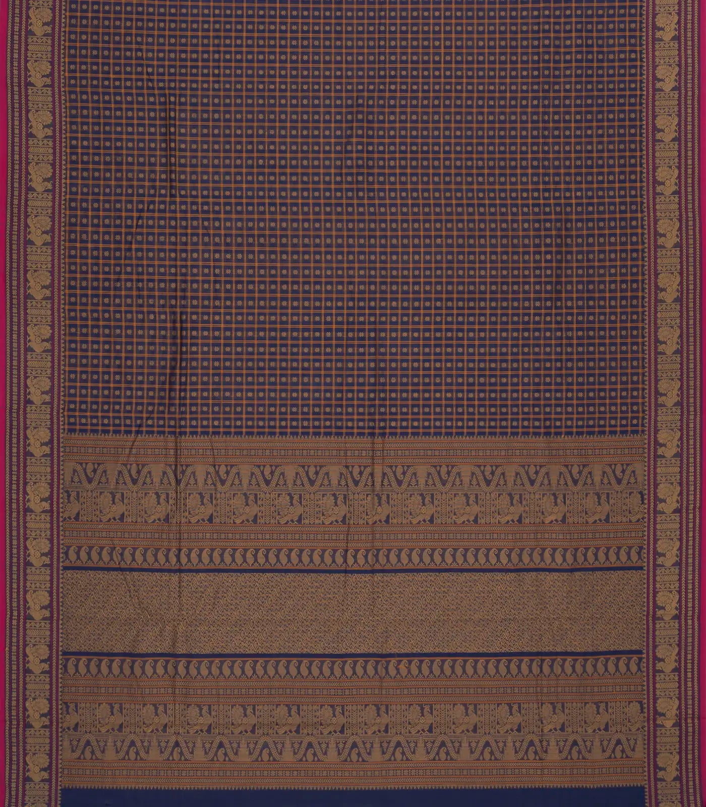 Lilac Handloom Kanchi Cotton Saree With Checks & Buttas-KC1589