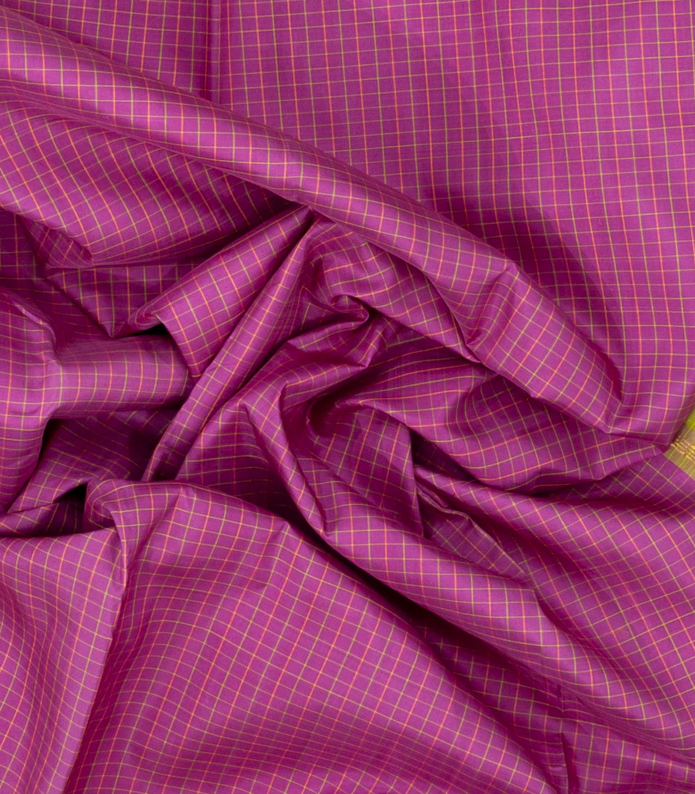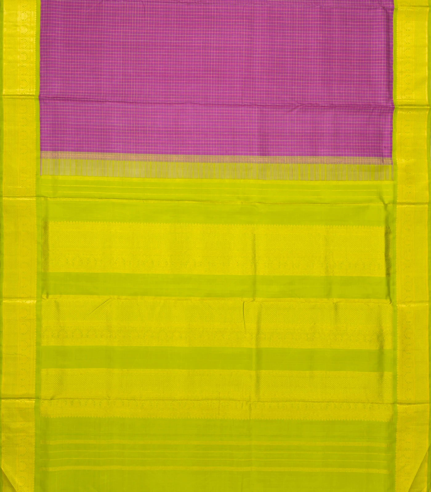Lilac Handloom Korvai Kanchipuram 9 Yards Silk Saree With Checks-KA13384