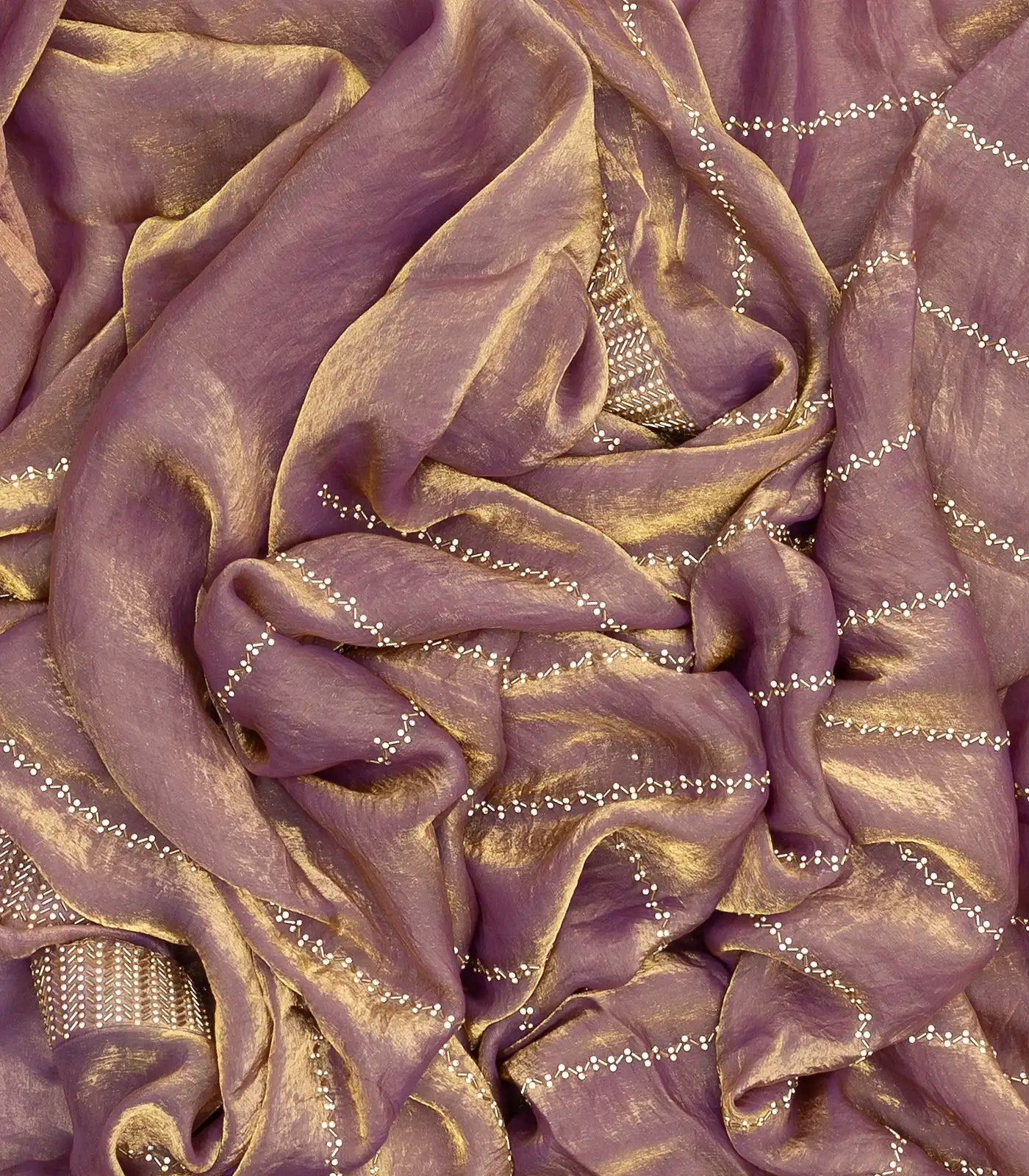 Lilac Woven Art Tissue Silk Saree With Embroidered Motifs-BL4632