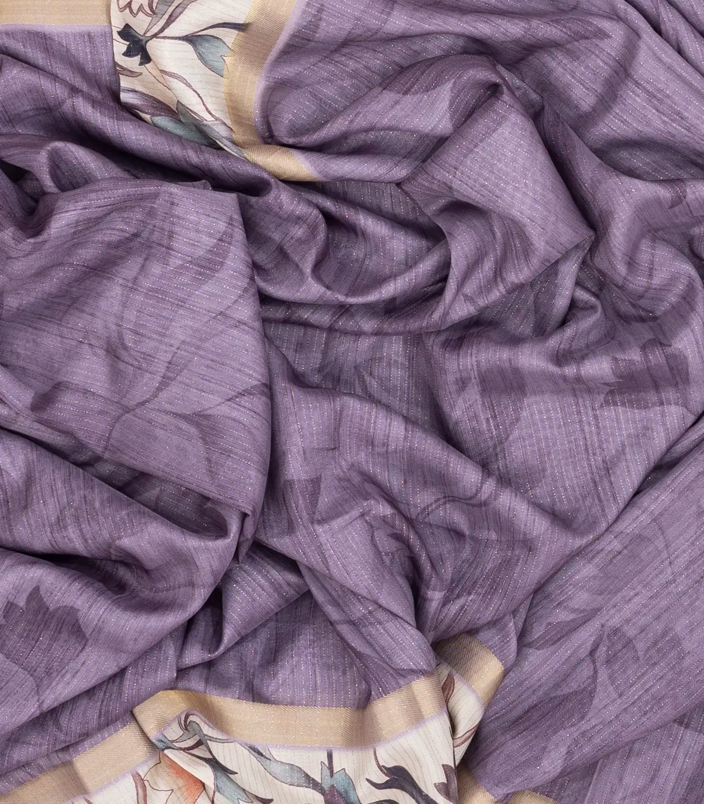 Lilac Woven Art Tussar Saree With Printed Floral Motifs-BL3969