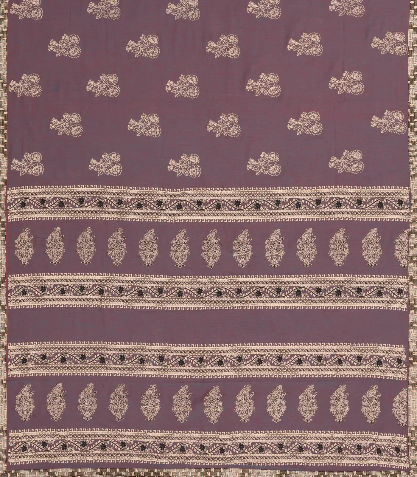 This woven chirala cotton saree is filled with floral motifs in lilac body along with printed floral motifs in border and pallu