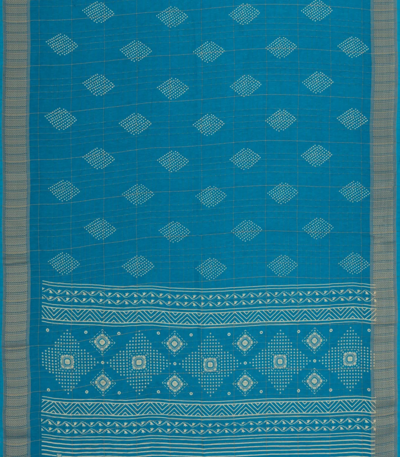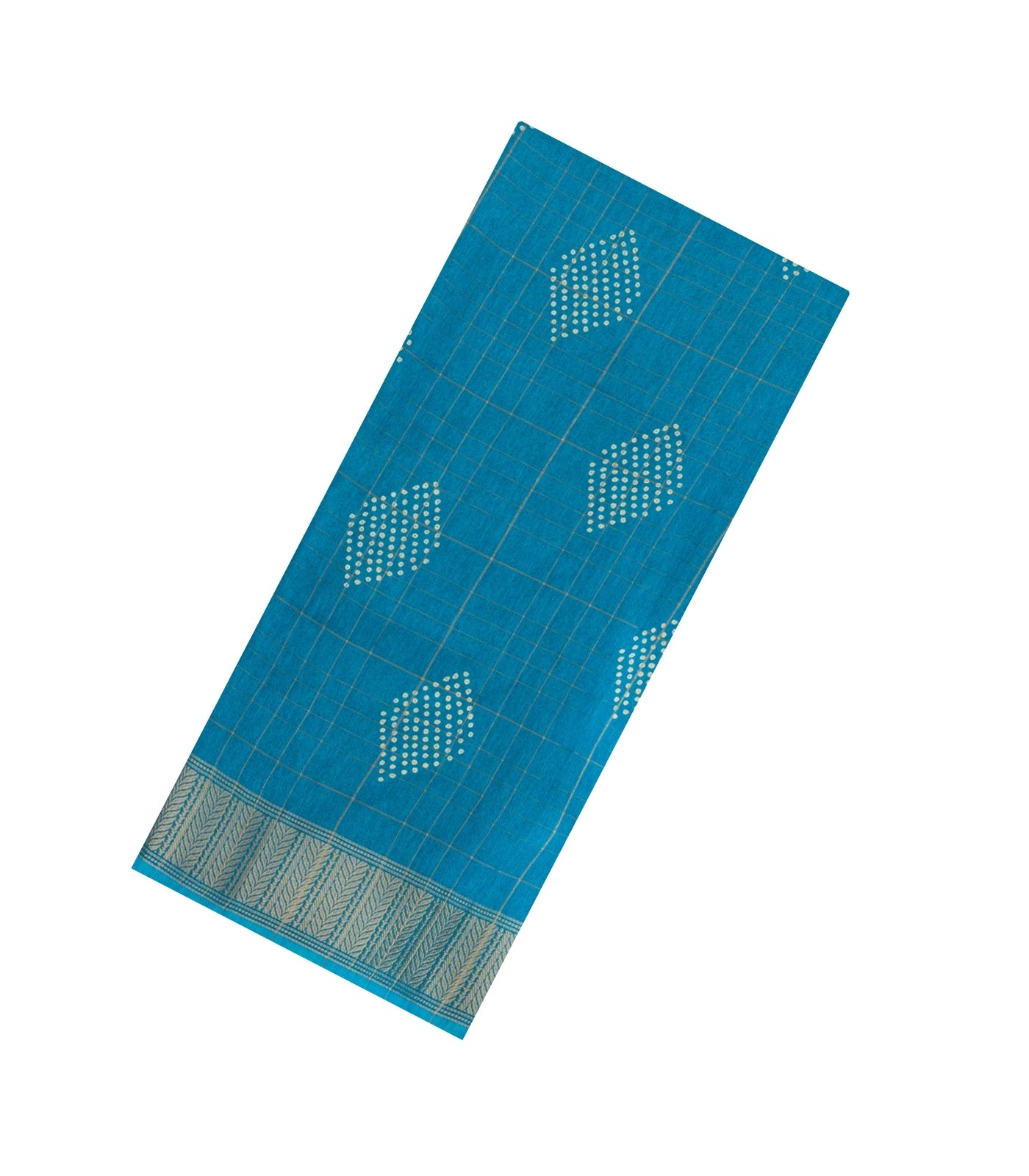 This woven blended synthetic chiffon silk saree is filled with printed diamond motifs in sky blue body along with border and pallu