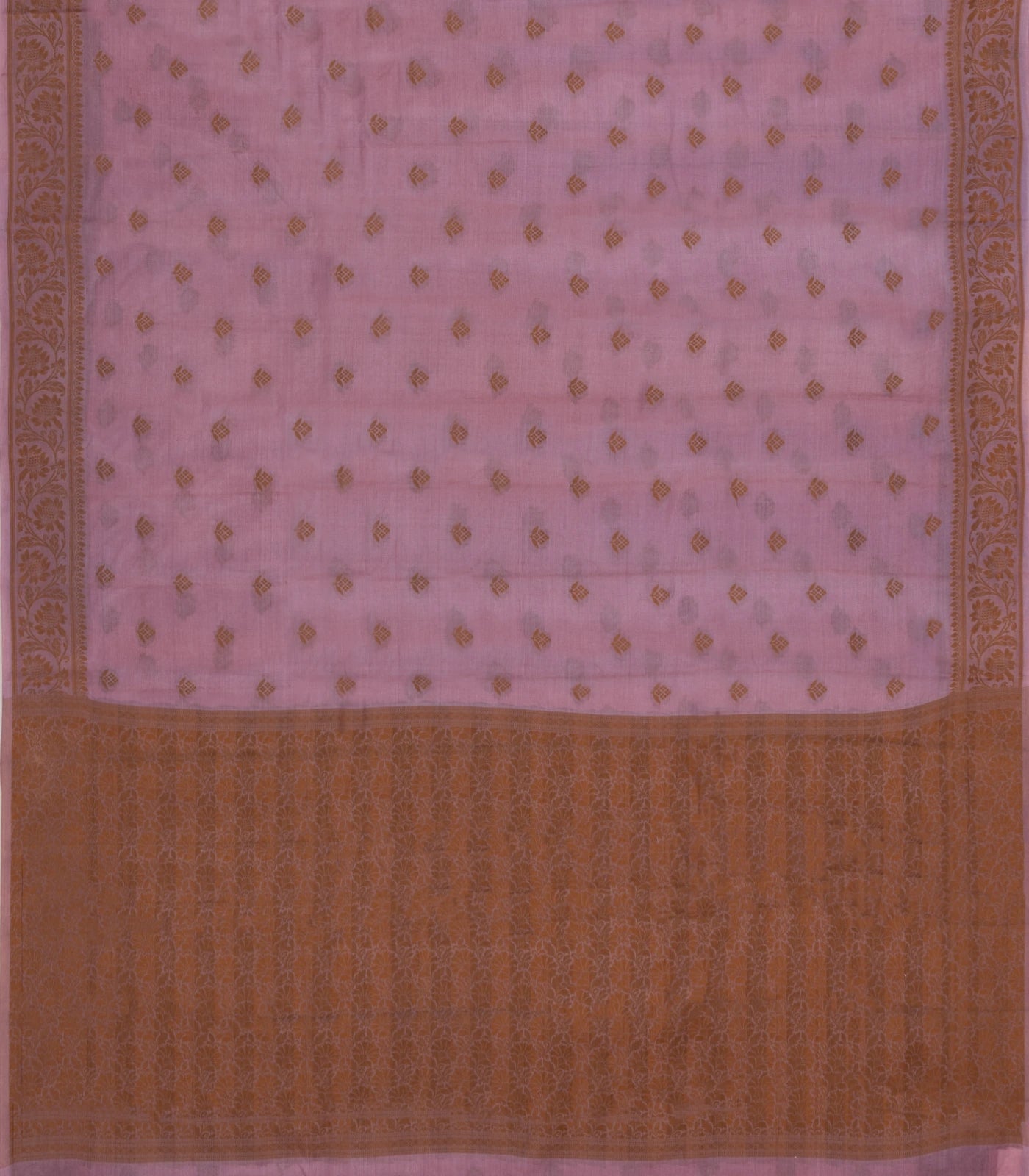 This woven tussar saree is filled with floral motifs in lilac body along with border & pallu