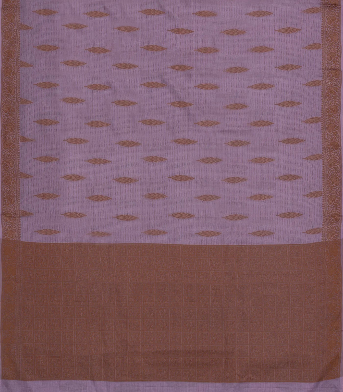 This woven tussar saree is filled with floral motifs in lilac body along with border & pallu
