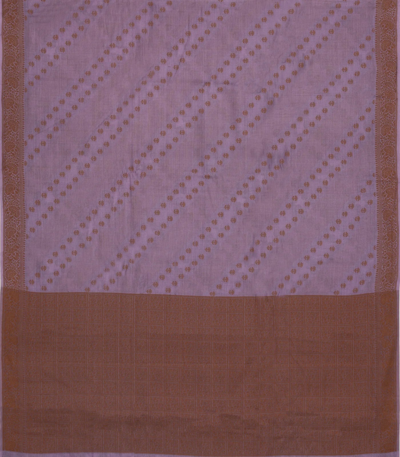 This woven tussar saree is filled with floral motifs in lilac body along with border & pallu