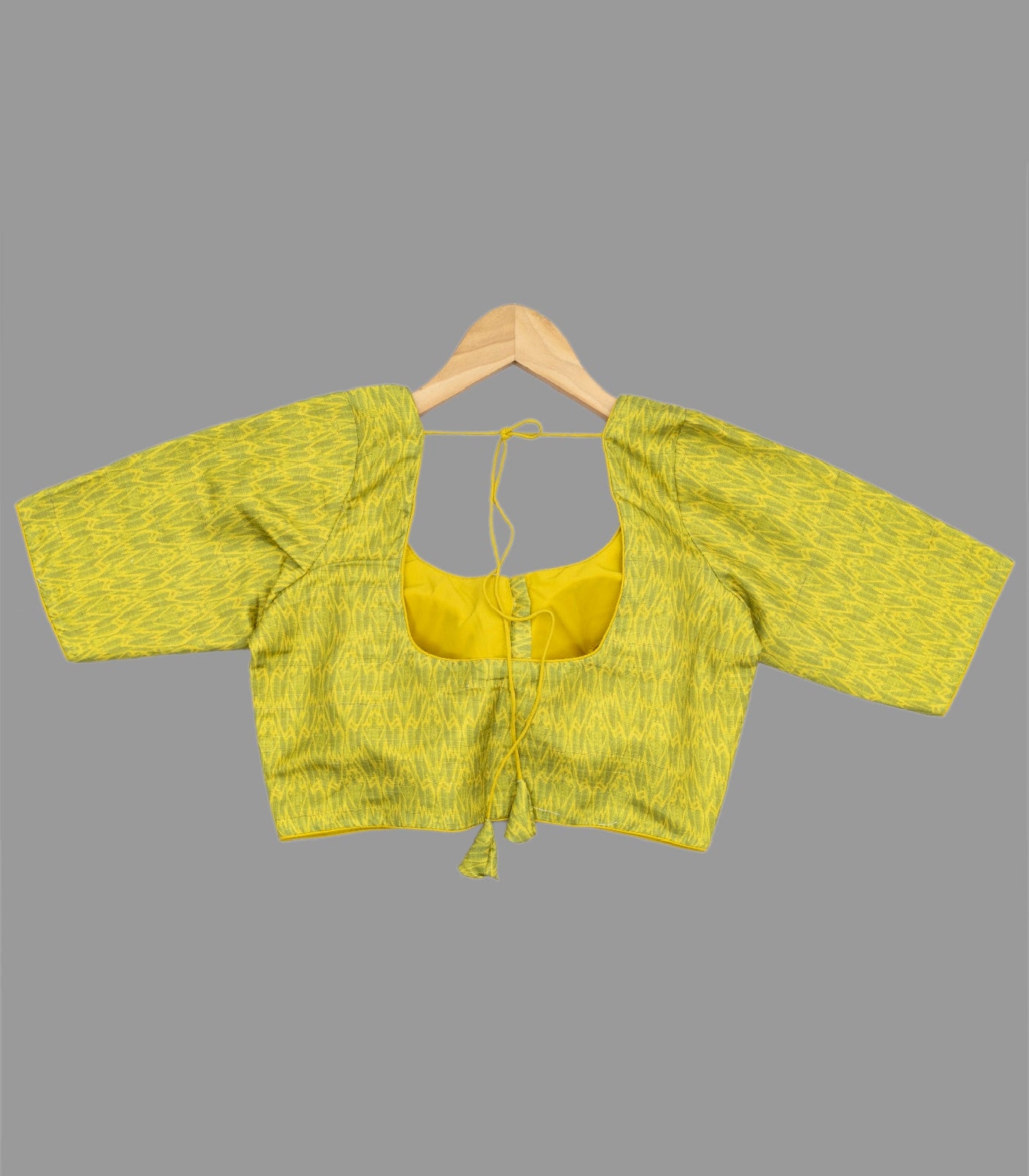 Ready made blouse Waist: 38 cms, Chest: 45 cms, Sleeve Length: 28 cms, Sleeve Round: 30 cms