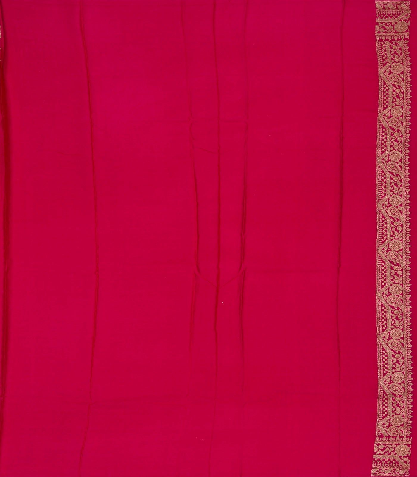 Magenta Handloom Banarasi Khadi Georgette Silk Saree With Floral Motifs-BE1625