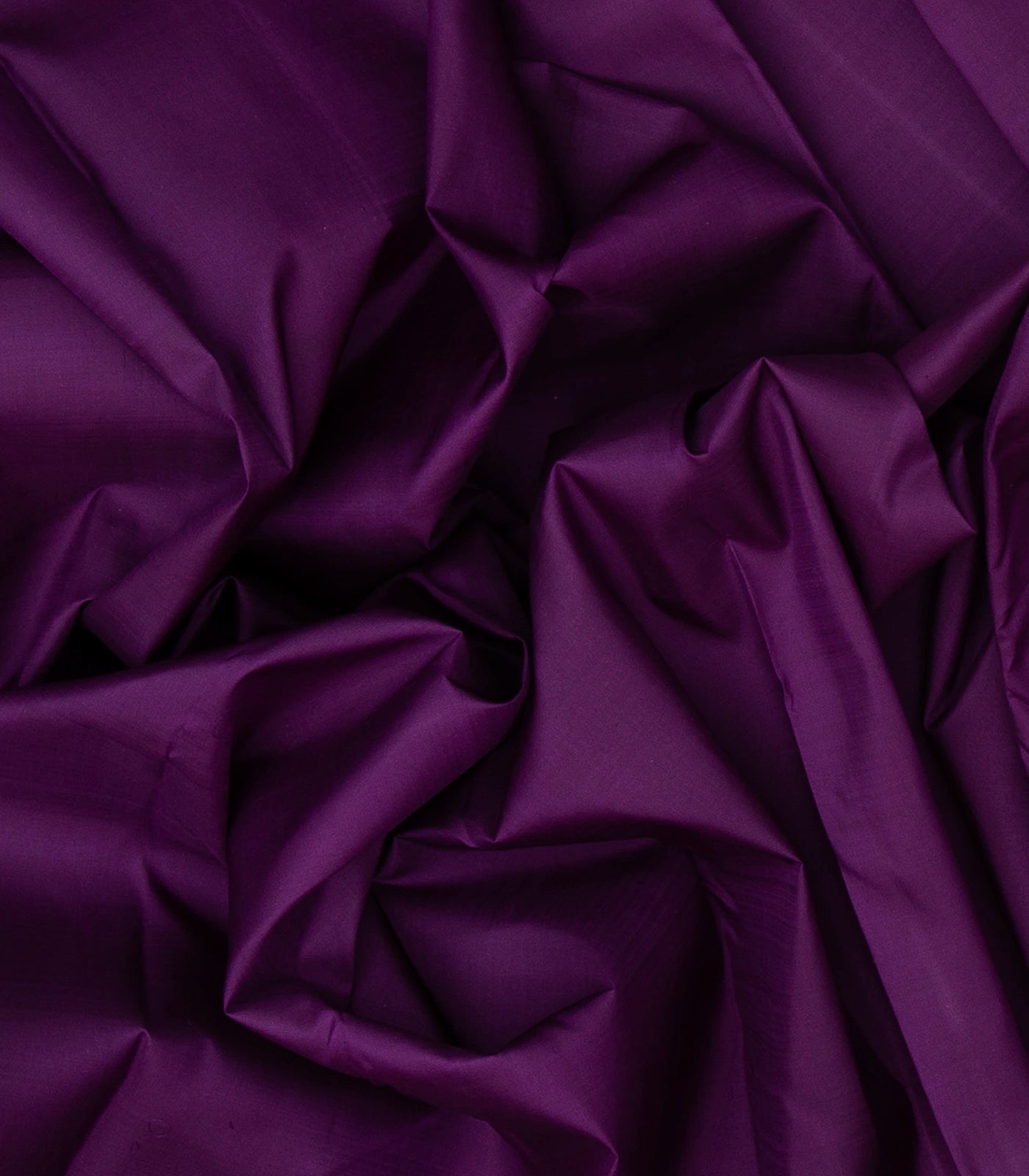 This handwoven kanchipuram korvai silk saree with plain magenta body along with elephant motifs in contrast silk thread work border and pallu