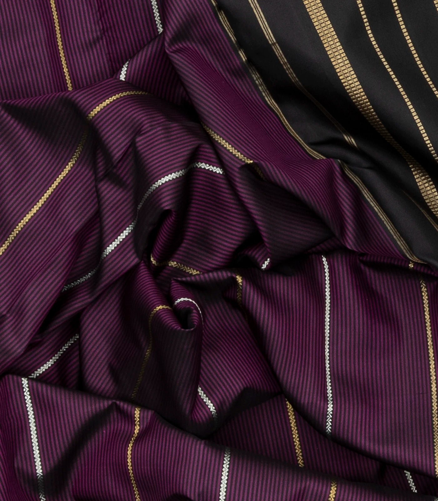Magenta Handloom Kanchipuram Silk Saree With Stripes