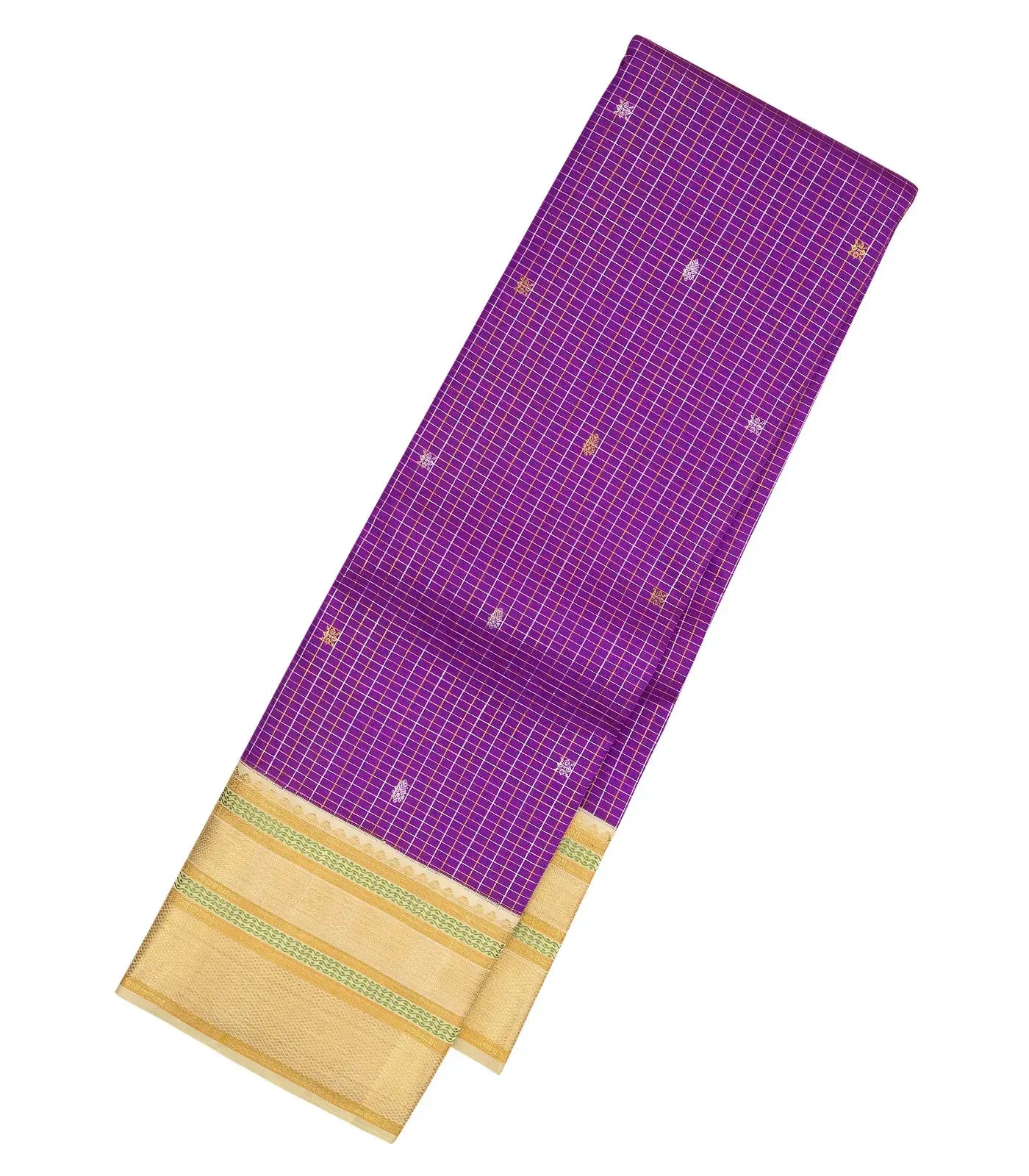 Magenta Handloom Korvai Kanchipuram Silk Saree With Checks & Buttas-KA12265