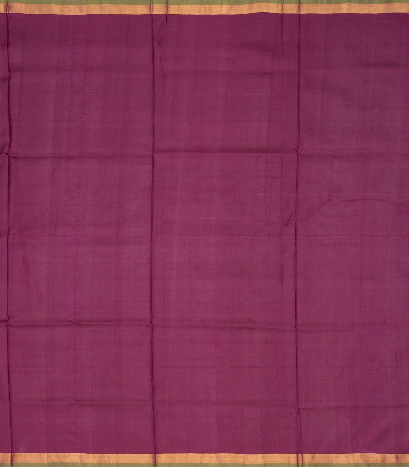This handwoven uppada silk saree is filled with floral buttas in magenta body along with zari border and pallu