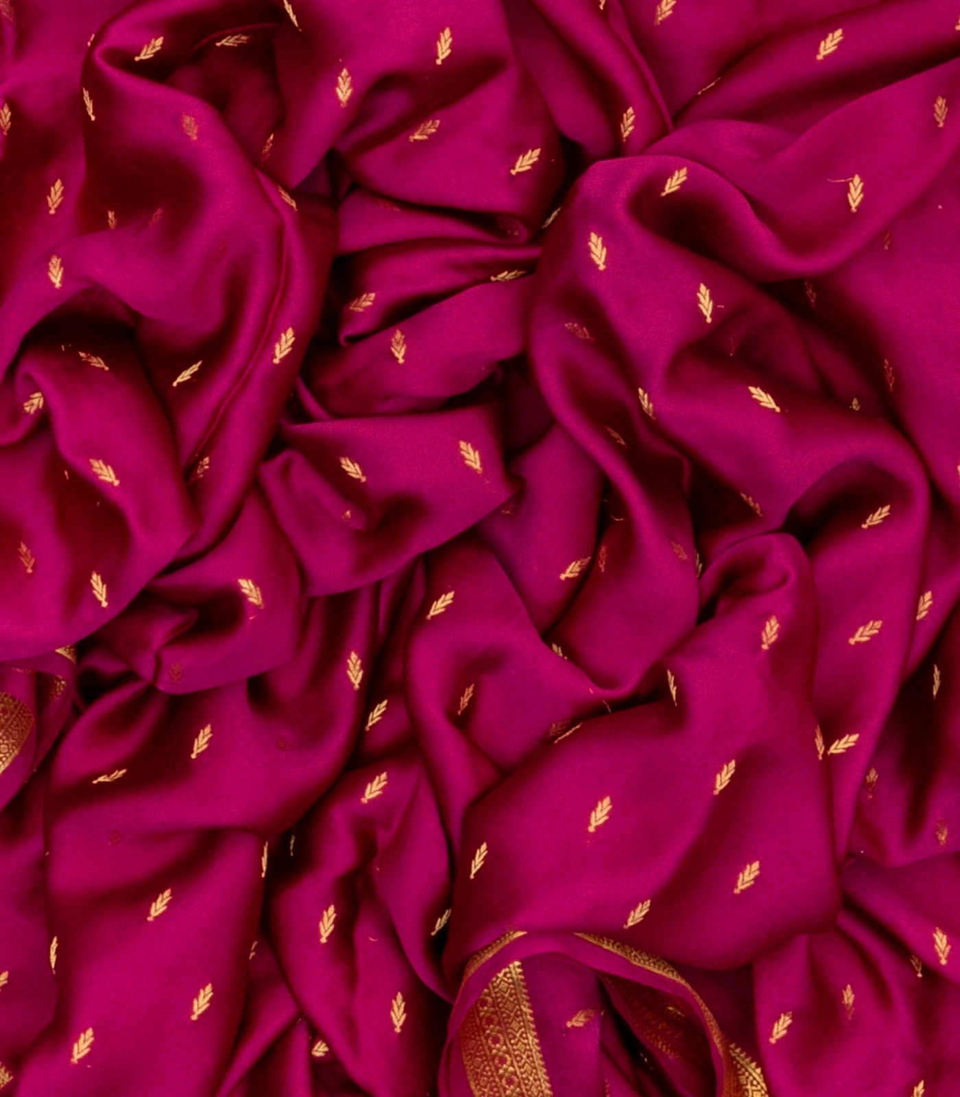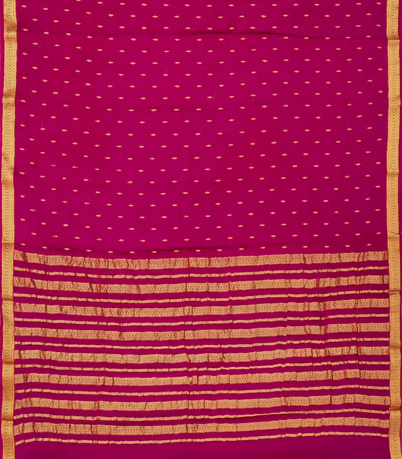 This pure mysore georgette silk saree is filled with floral motifs in magenta body along with border and pallu