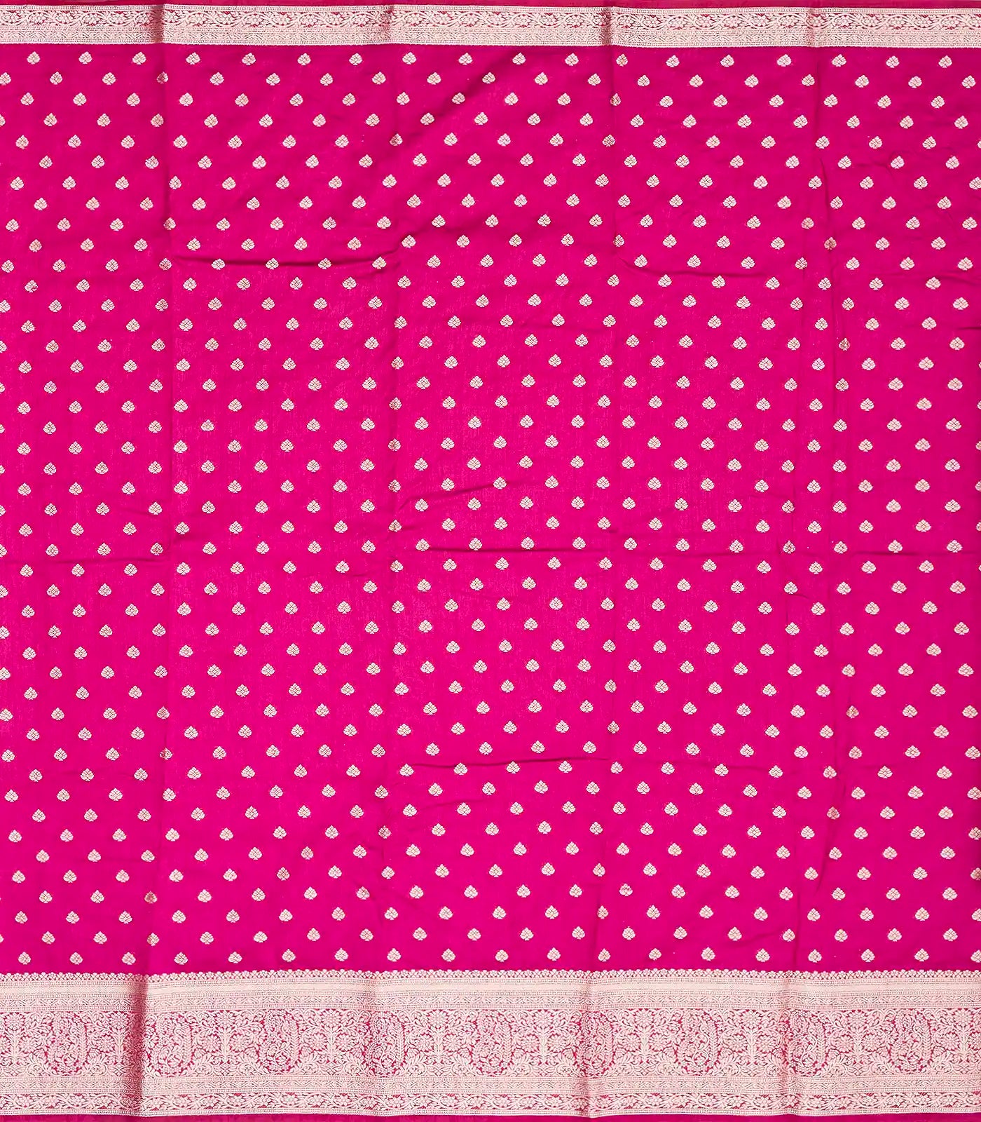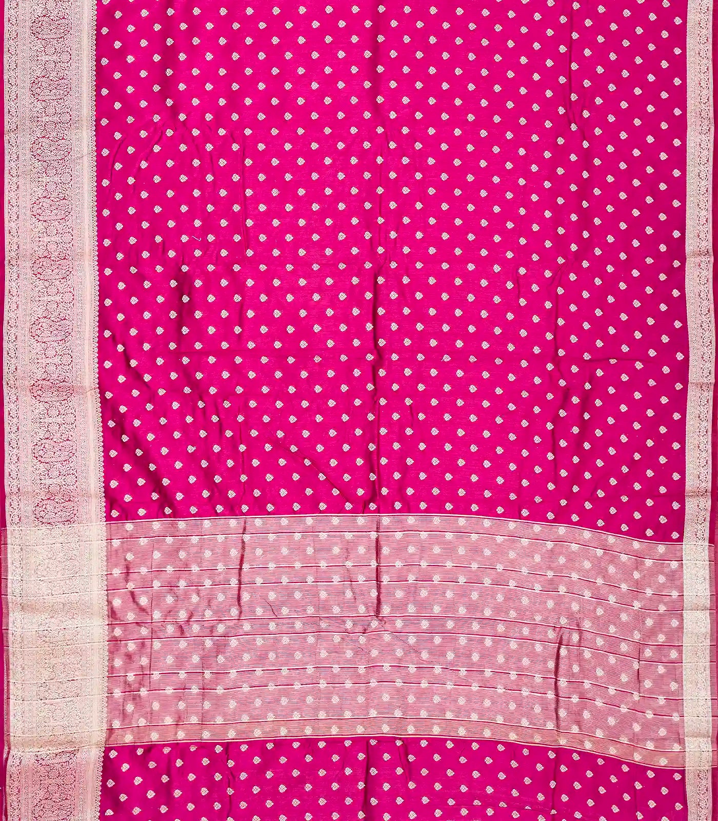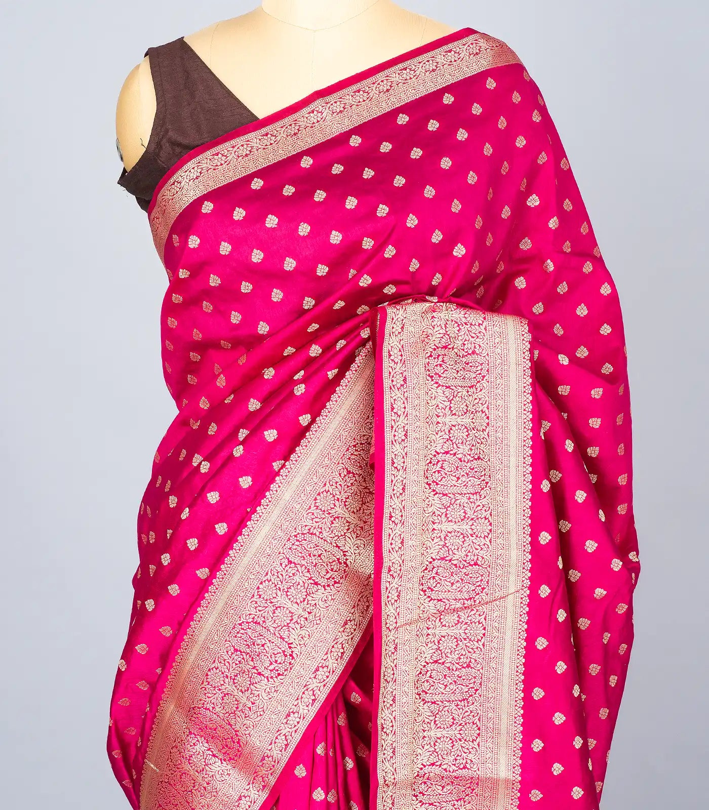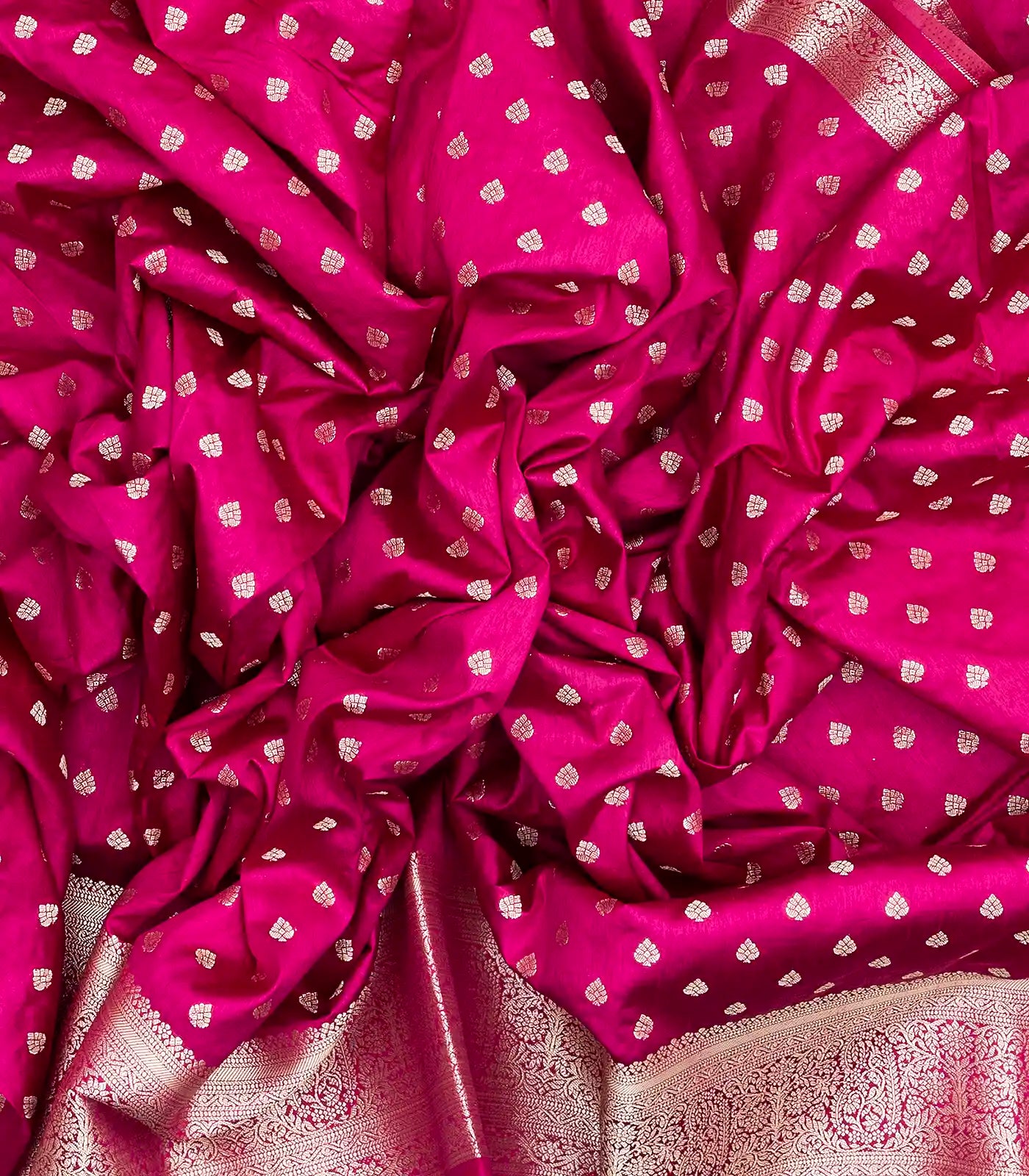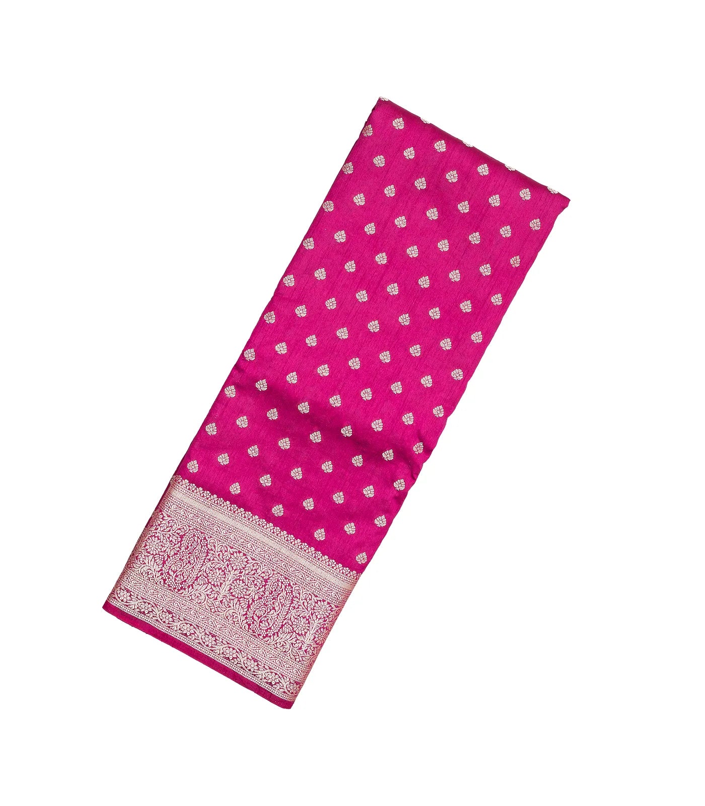 This woven art tussar silk saree is filled with floral motifs in magenta body along with border and pallu