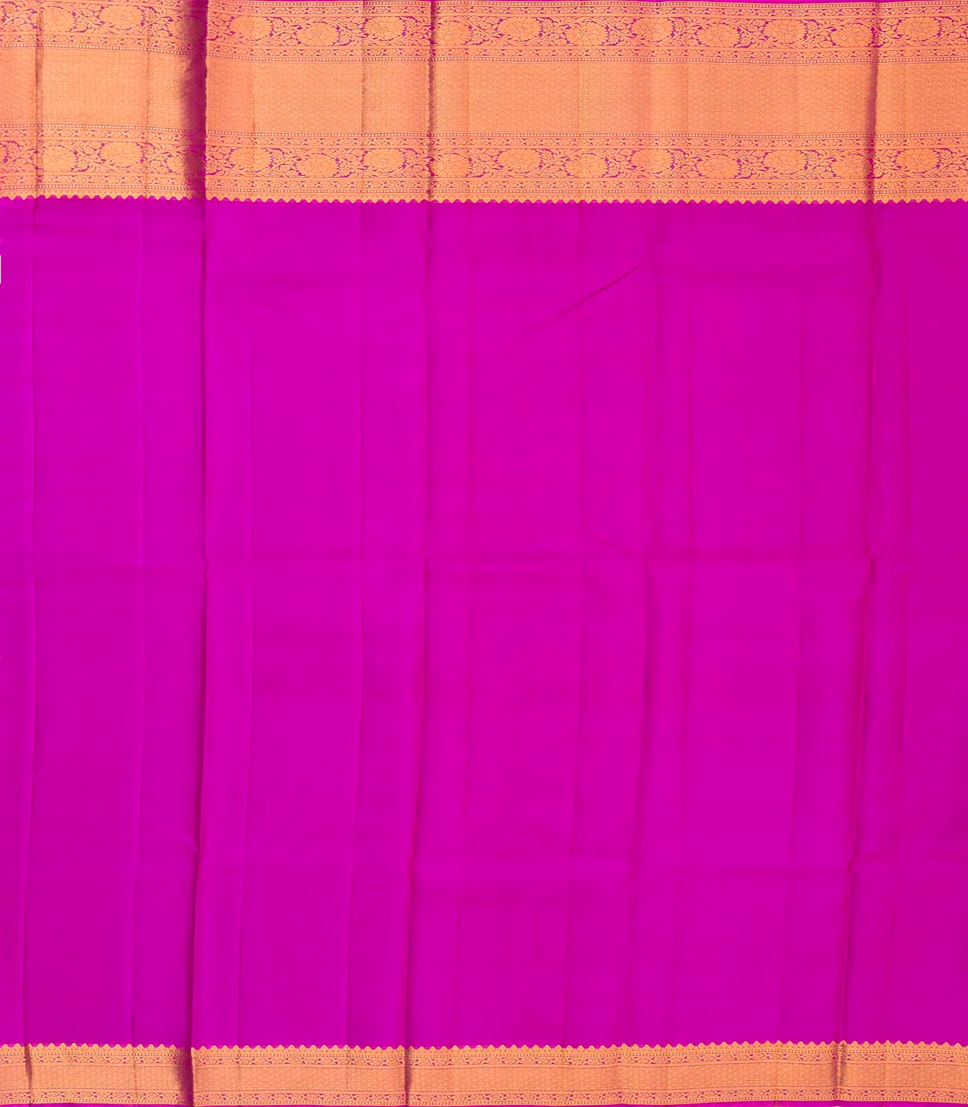 This woven kanchipuram silk saree is filled with floral motifs in magenta body along with zari border and pallu