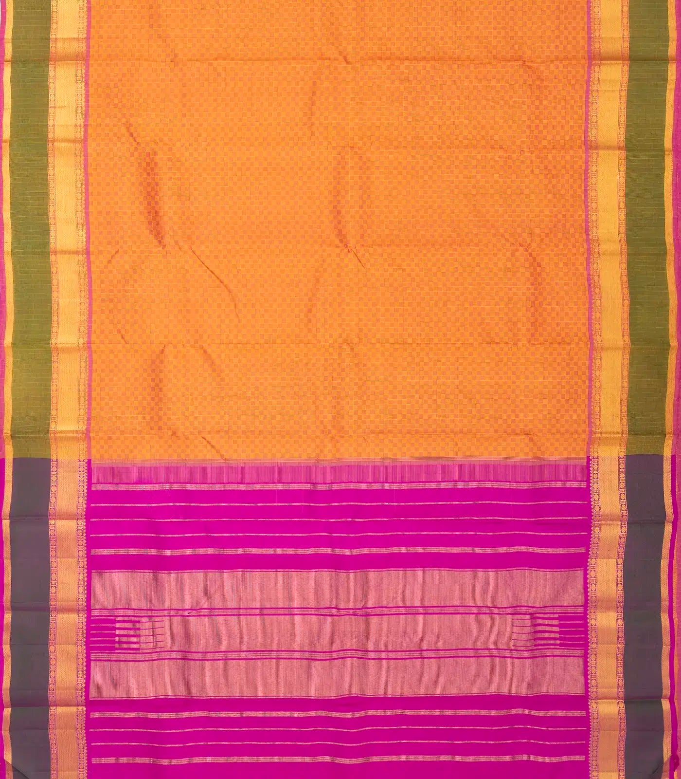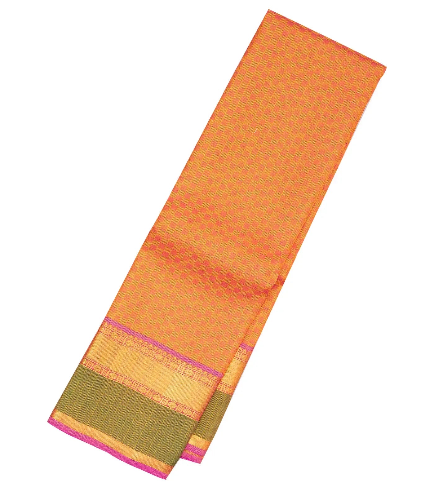 Mango Yellow Handloom Kanchipuram Silk Saree With Payadi Checks-KA12329