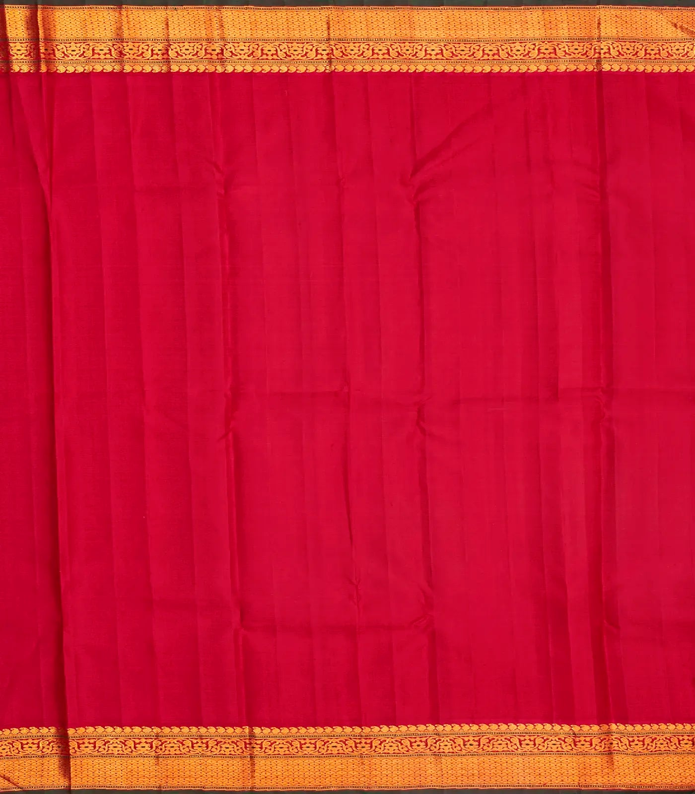 A testament to the legacy of RmKV’s master weavers, this handwoven marvel blends the precision of Korvai weaving with the richness of zari artistry, ensuring a regal drape that cascades effortlessly. Lightweight yet resplendent, this saree is more than an ensemble—it is a poetic celebration of tradition, a cherished heirloom that captures the essence of timeless beauty and cultural heritage.