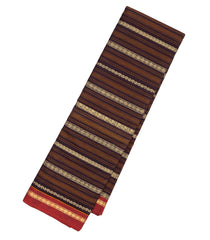This handwoven kanchi cotton saree is filled with beldari stripes in maroon body along with contrast crimson border and pallu