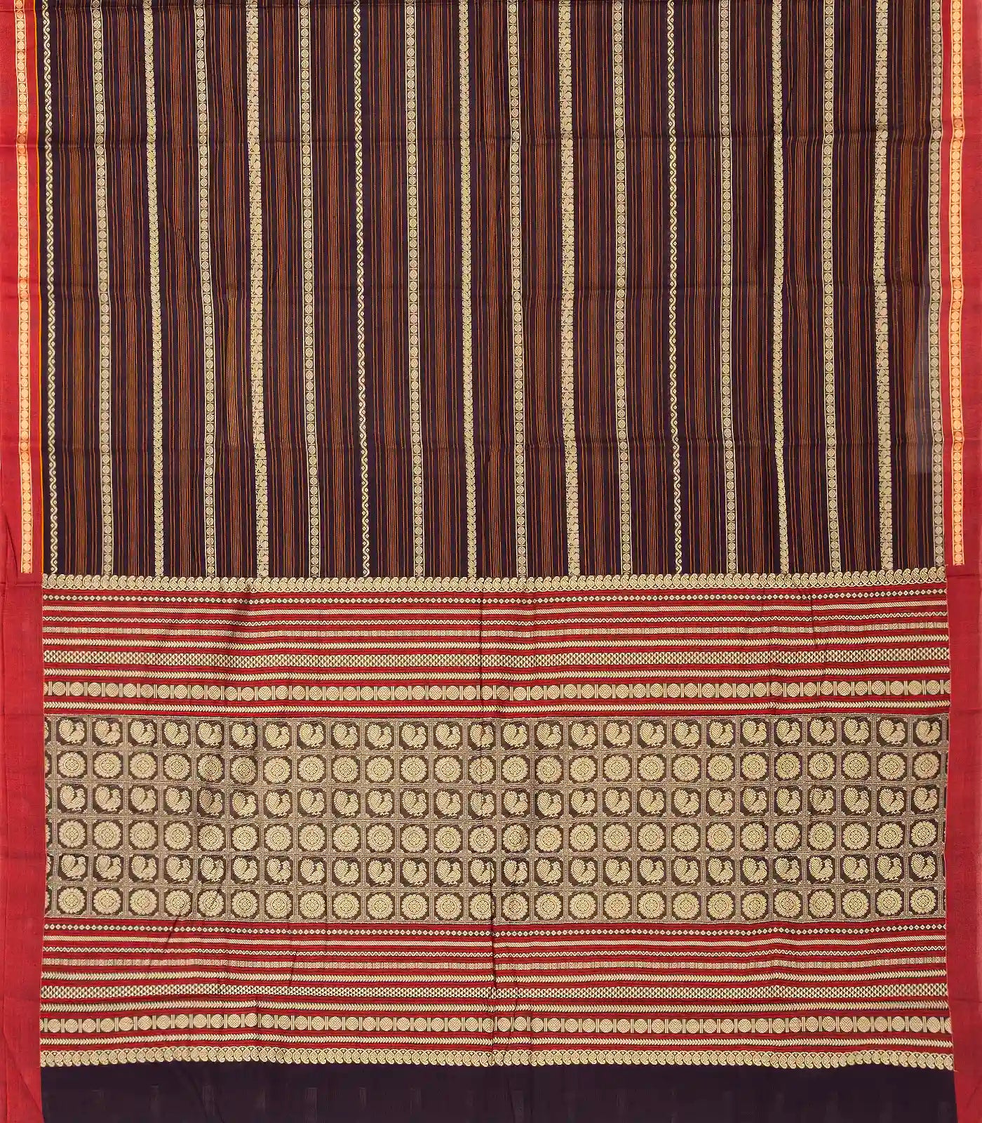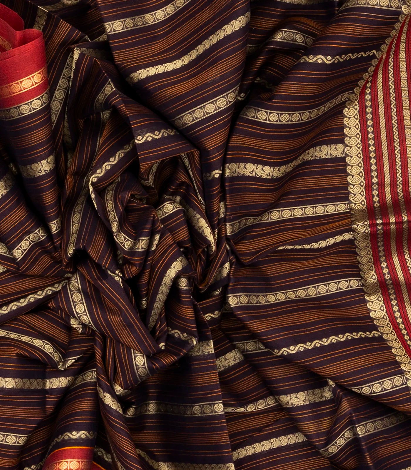 Maroon Handloom Kanchi Cotton Saree With Beldari Stripes-KC1442