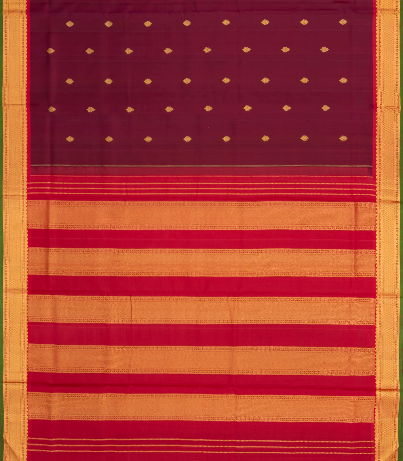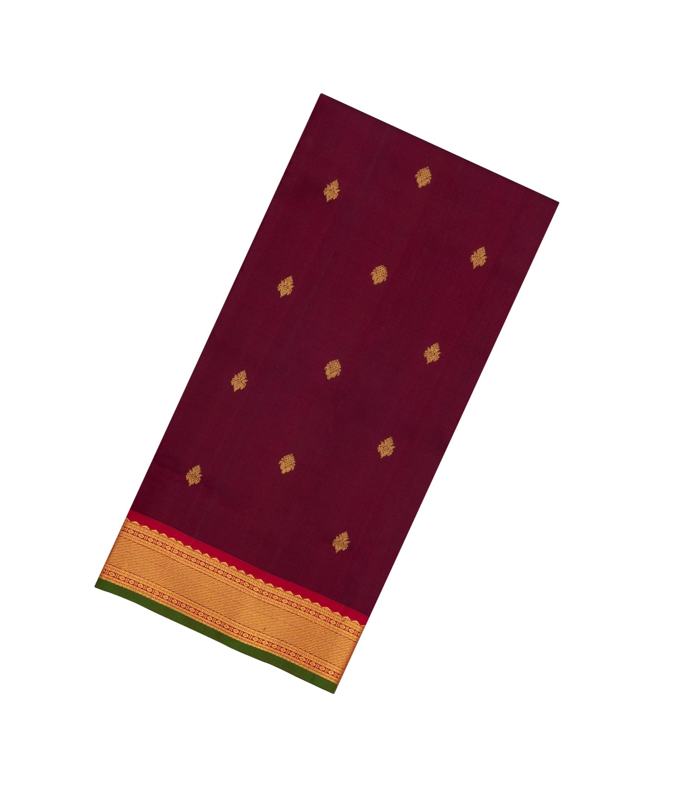 Maroon Handloom Kanchipuram 9 Yards Silk Saree With Floral Buttas-KA13739