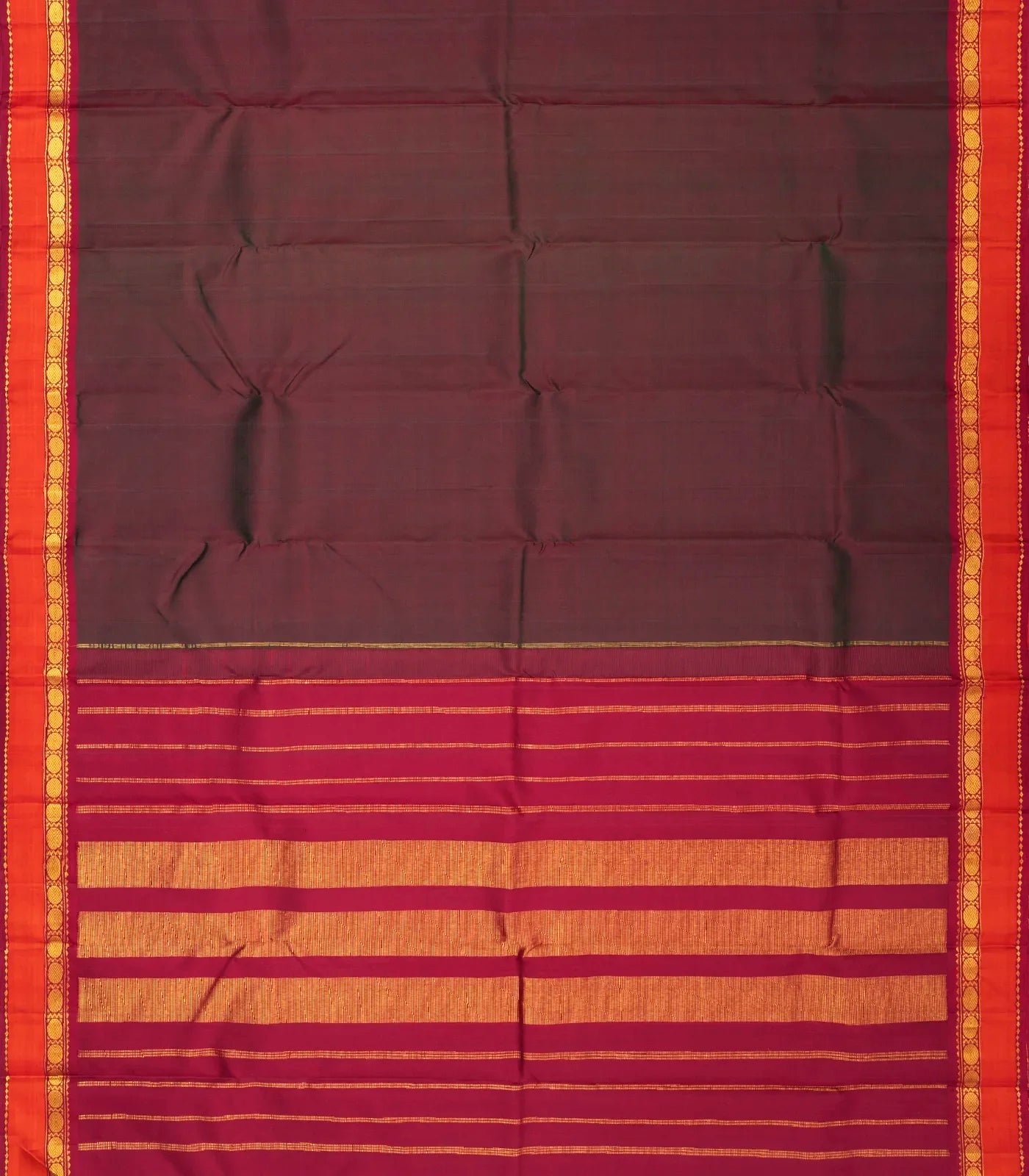Maroon Handloom Kanchipuram Silk Saree With Contrast Border-KA12284