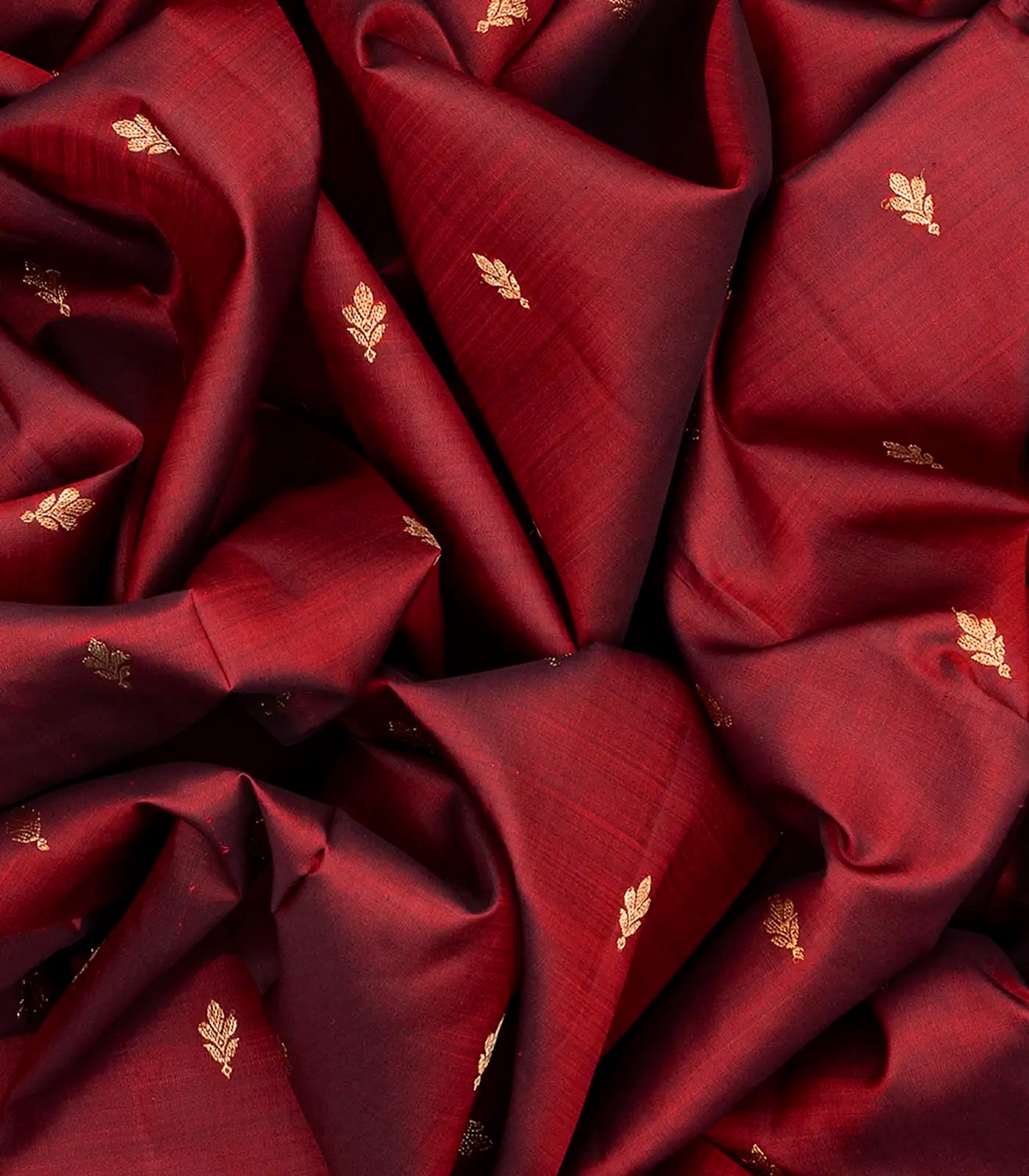 Maroon Handloom Kanchipuram Silk Saree With Floral Buttas-Maroon