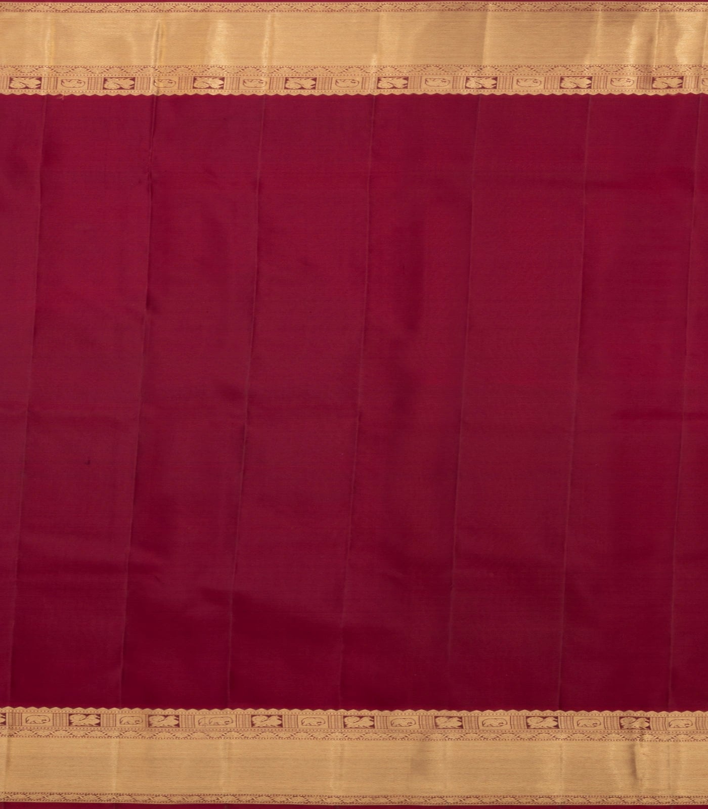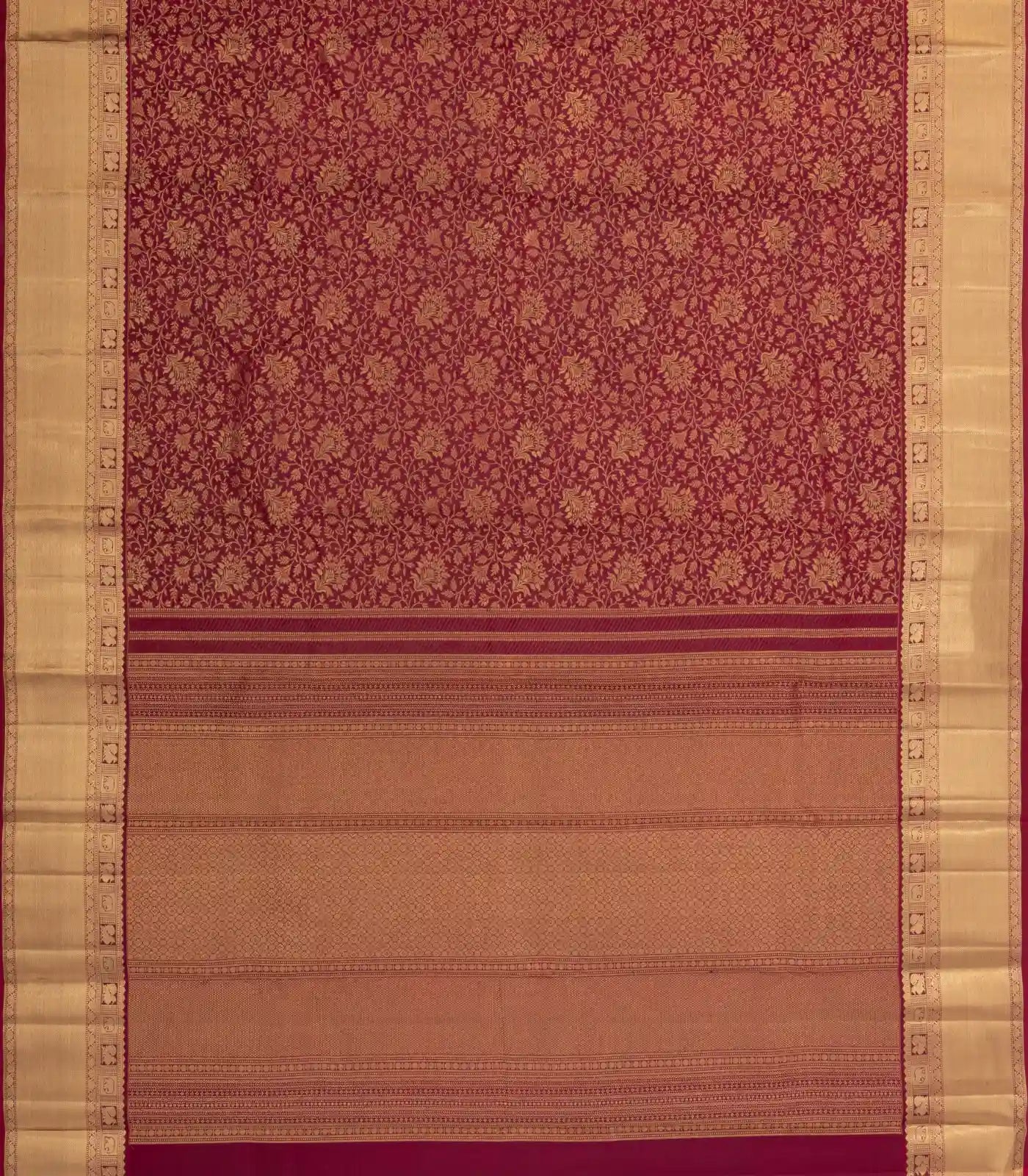 Maroon Handloom Kanchipuram Silk Saree With Floral Vine Motifs-KA14767