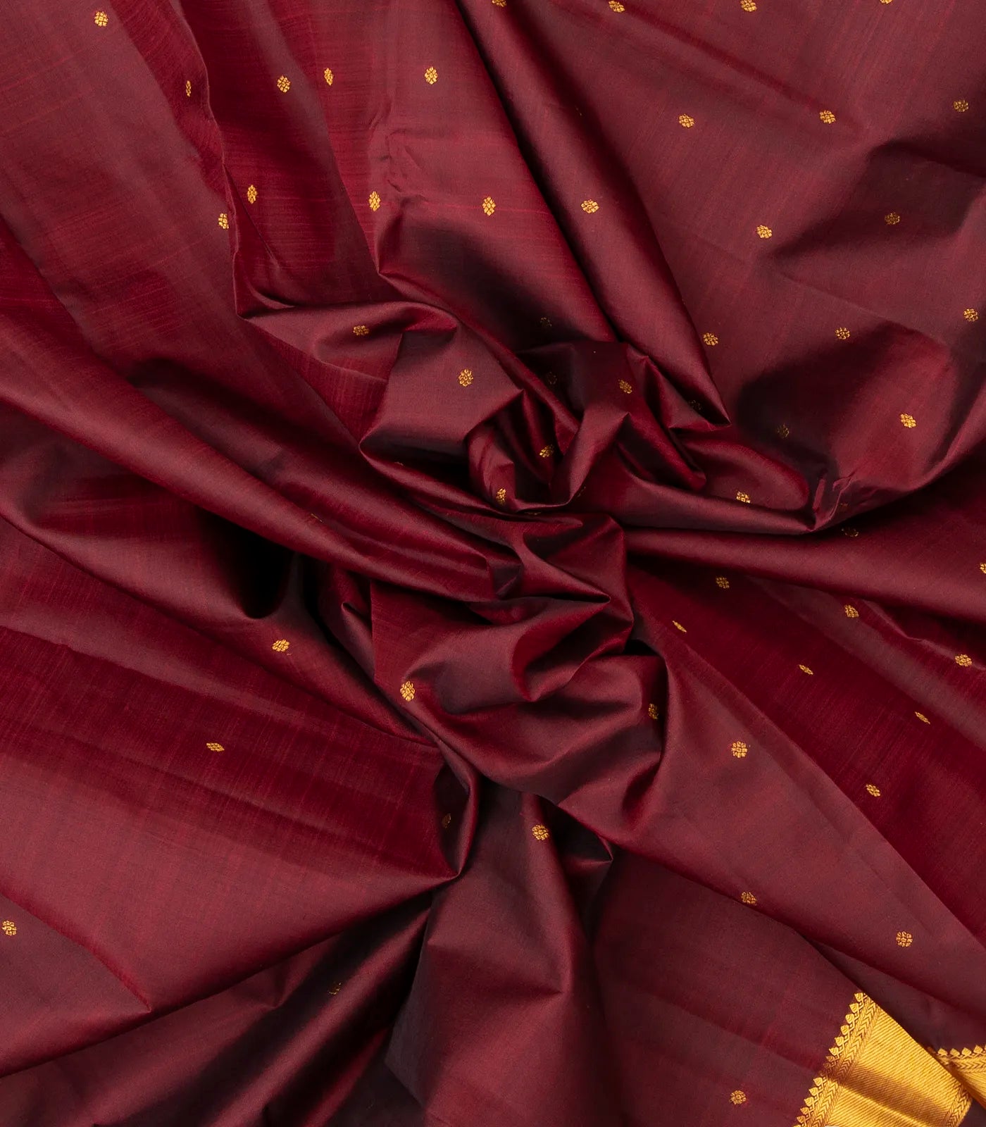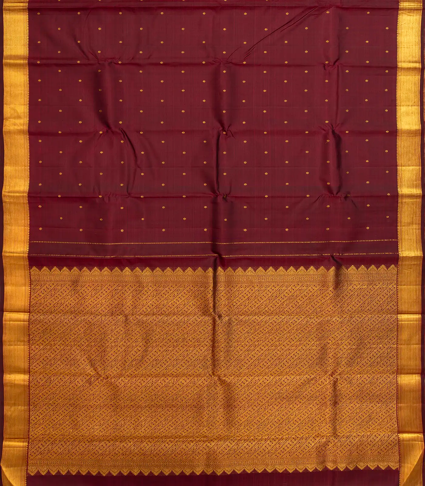 Maroon Handloom Kanchipuram Silk Saree With Kamalam Buttas