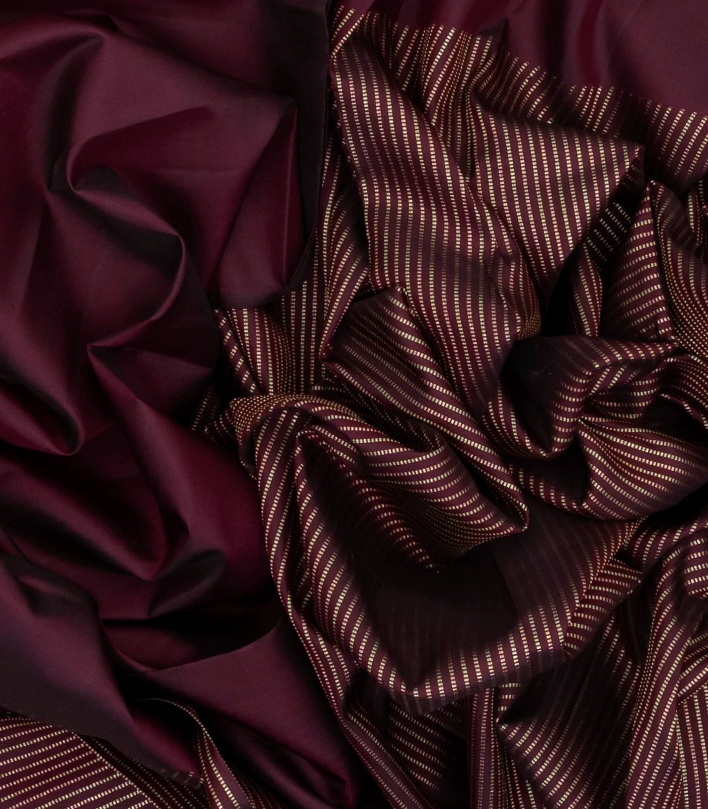 Maroon Handloom Kanchipuram Silk Saree With Rising Border Stripes-KA12297