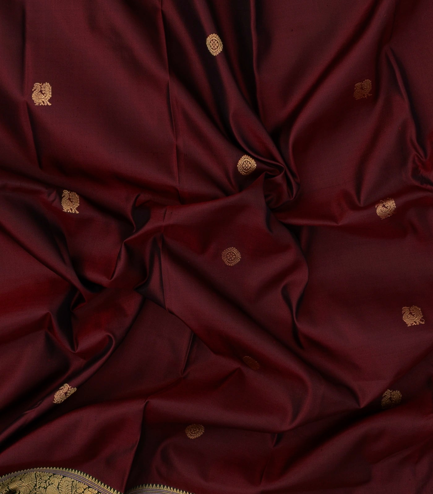 Maroon Handloom Kanchipuram Silk Saree With Zari Buttas-KA15197