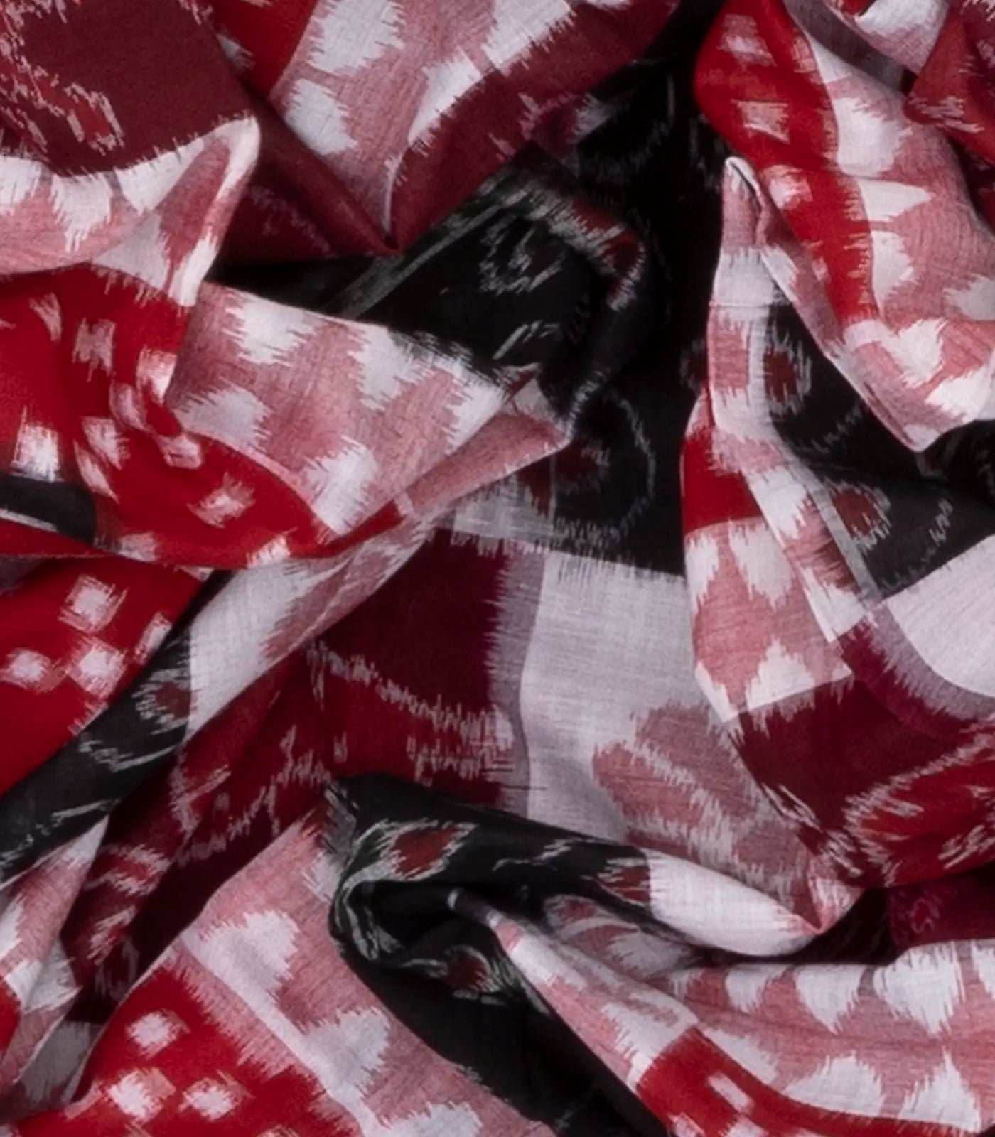 Maroon Handloom Orissa Cotton Saree With Ikat Annam Motifs-Maroon