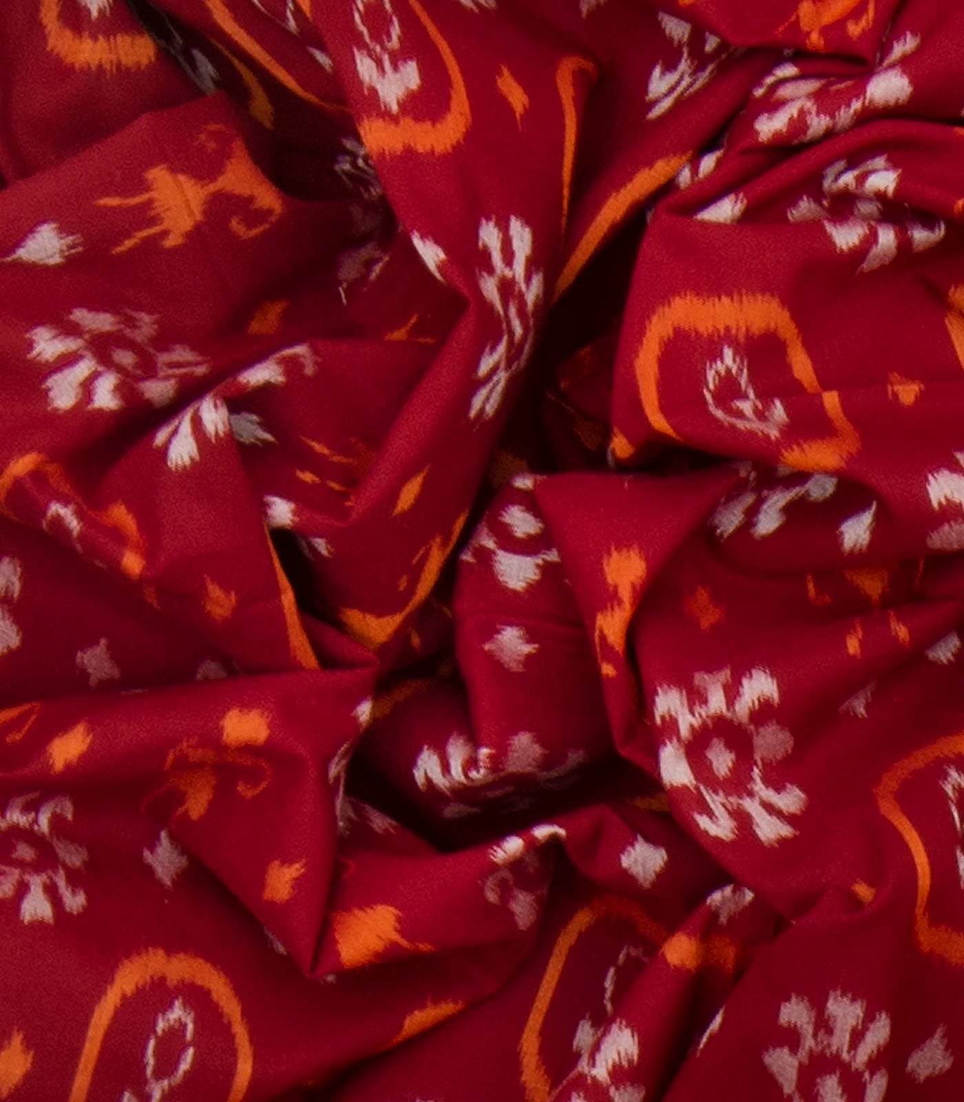 Maroon Handloom Orissa Cotton Saree With Ikat Floral Motifs-Maroon