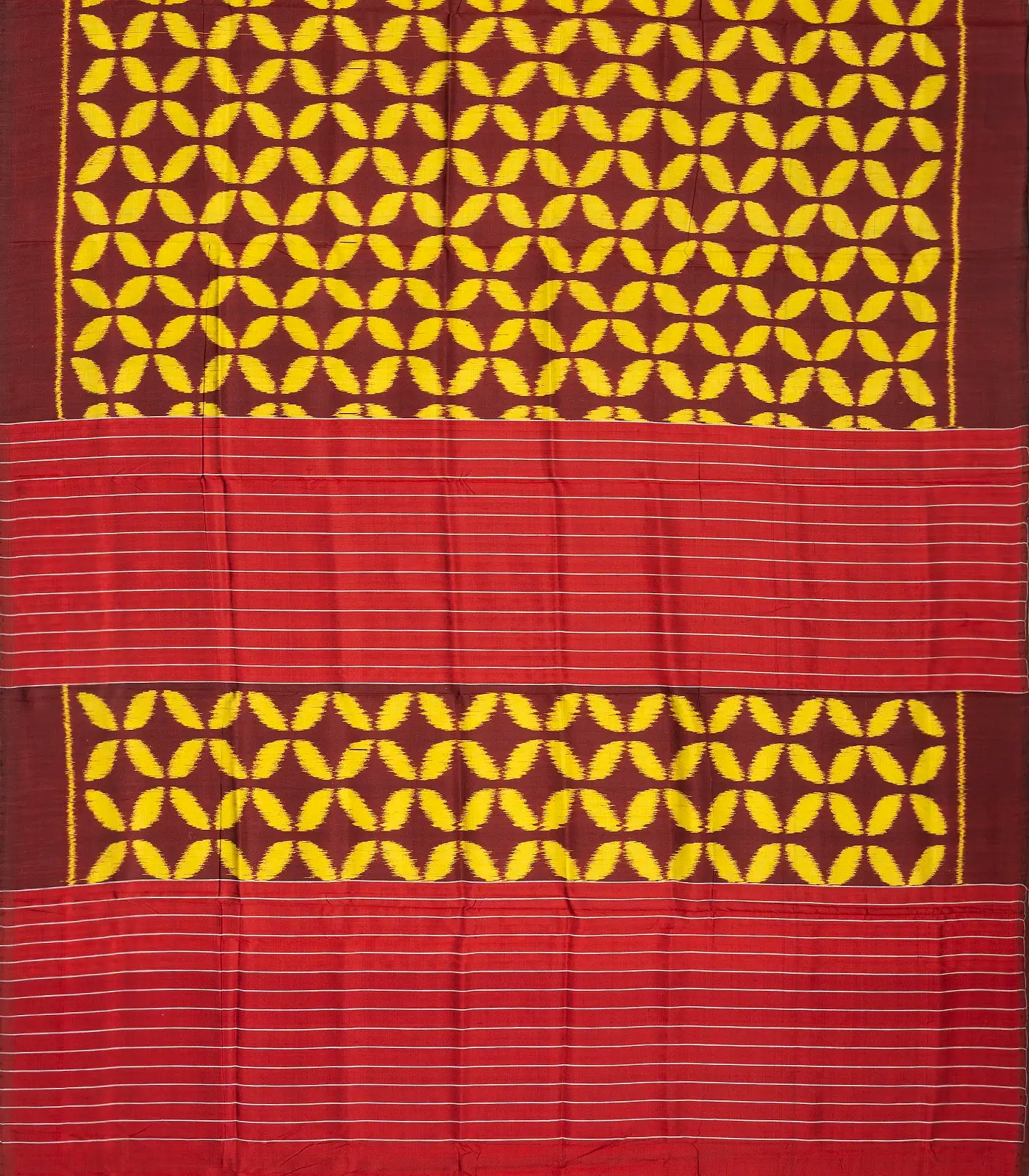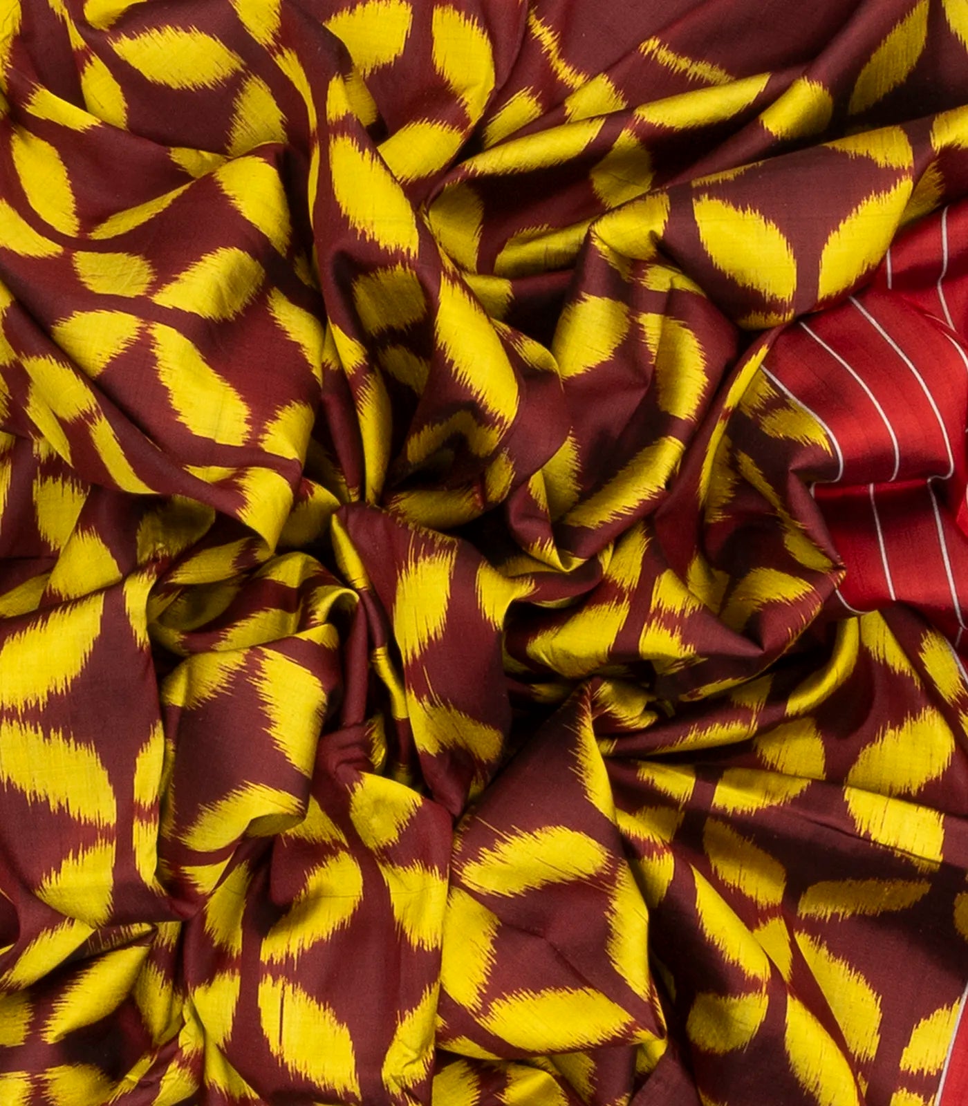 Maroon Handloom Orissa Silk Saree With Tie & Dye Jaal Motifs-OR0867