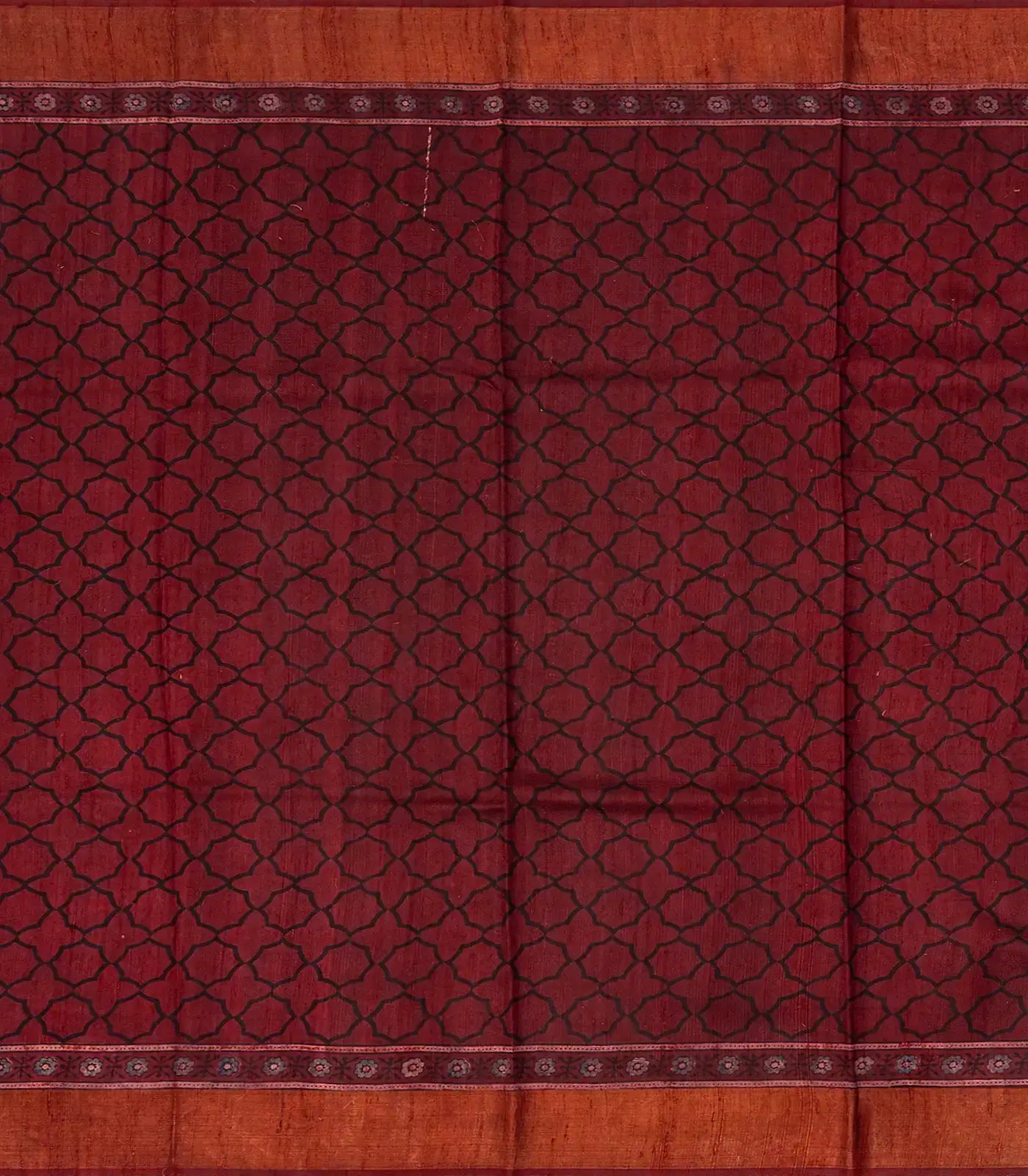 Maroon Handloom Tussar Silk Saree With Printed Floral Jaal Motifs-TU2540