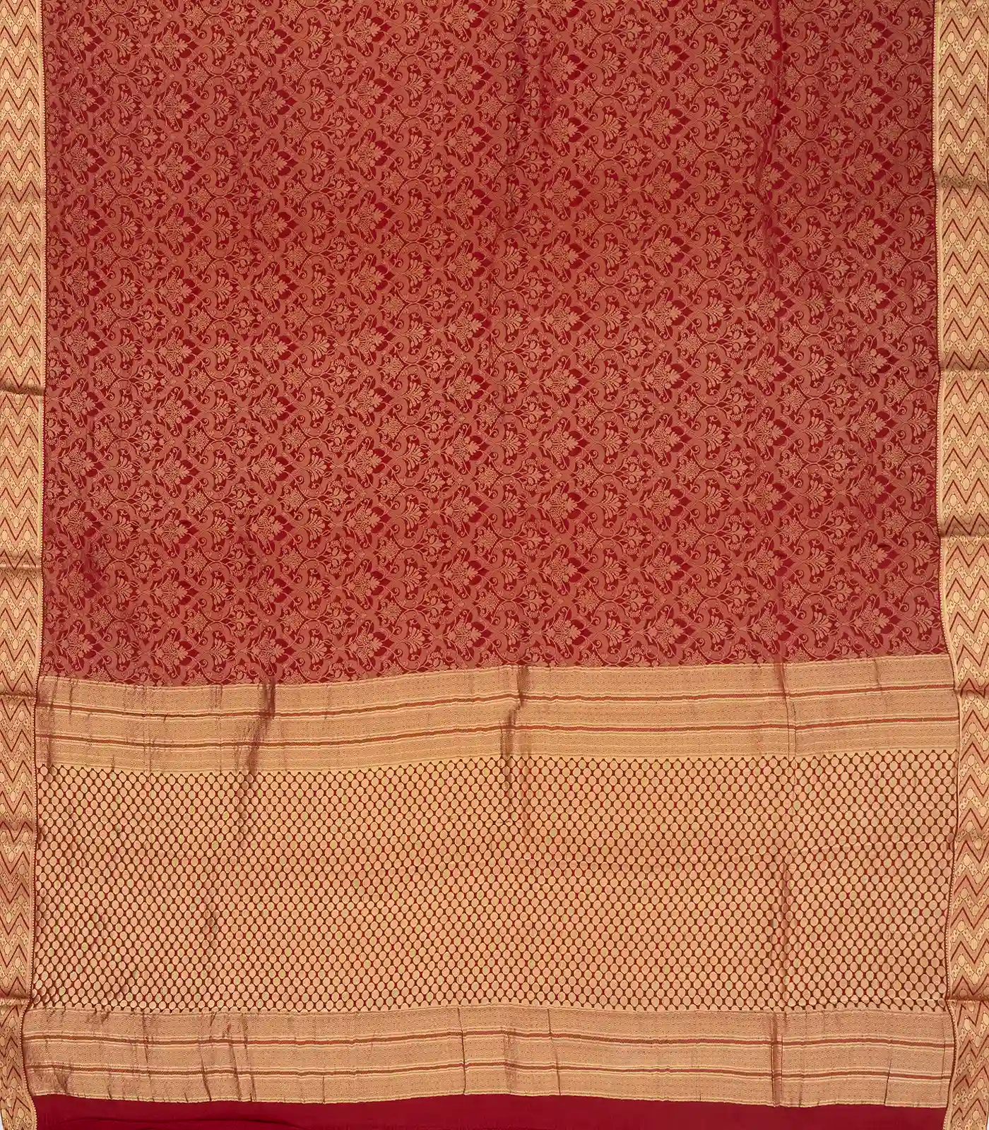 Maroon Handwoven Banarasi Georgette Silk Saree With Floral Motifs