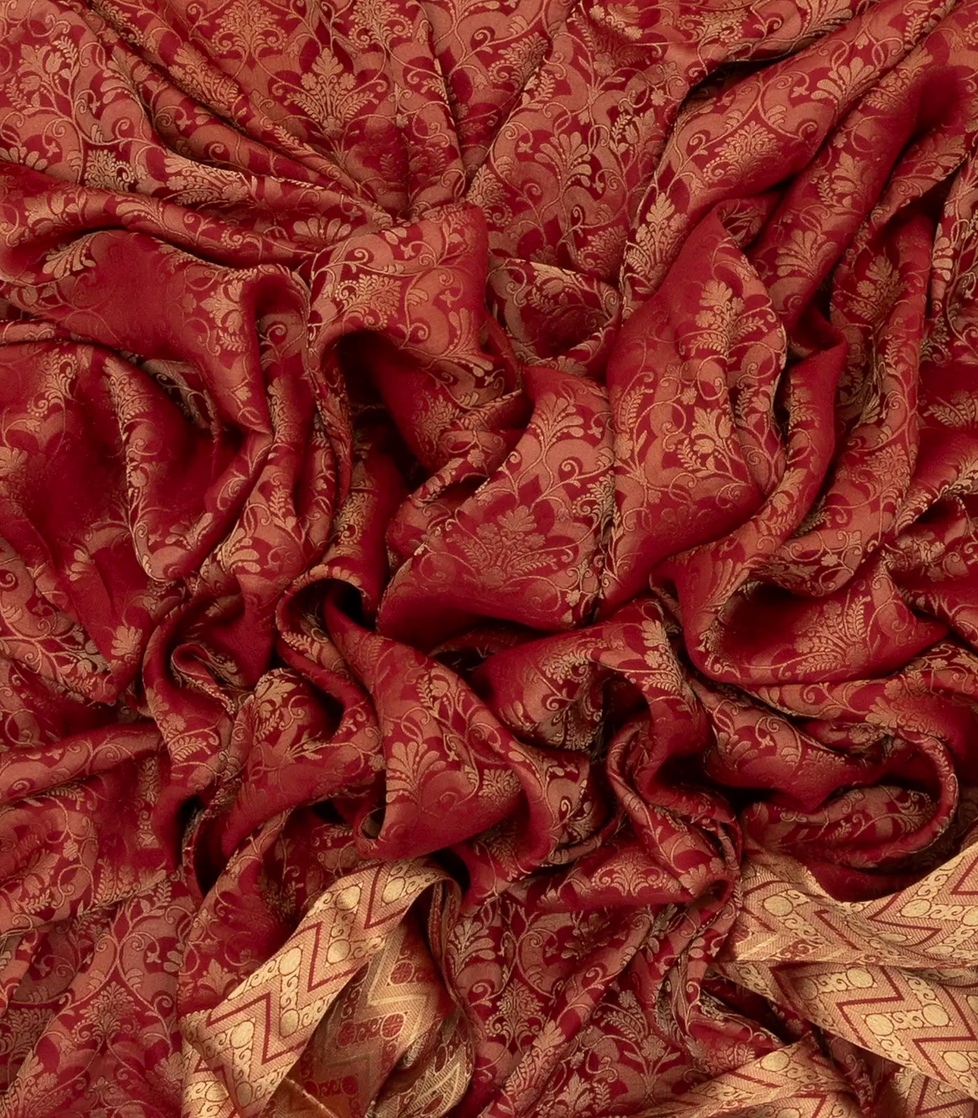 This handwoven banarasi georgette silk saree with floral motifs in maroon body along with border and pallu