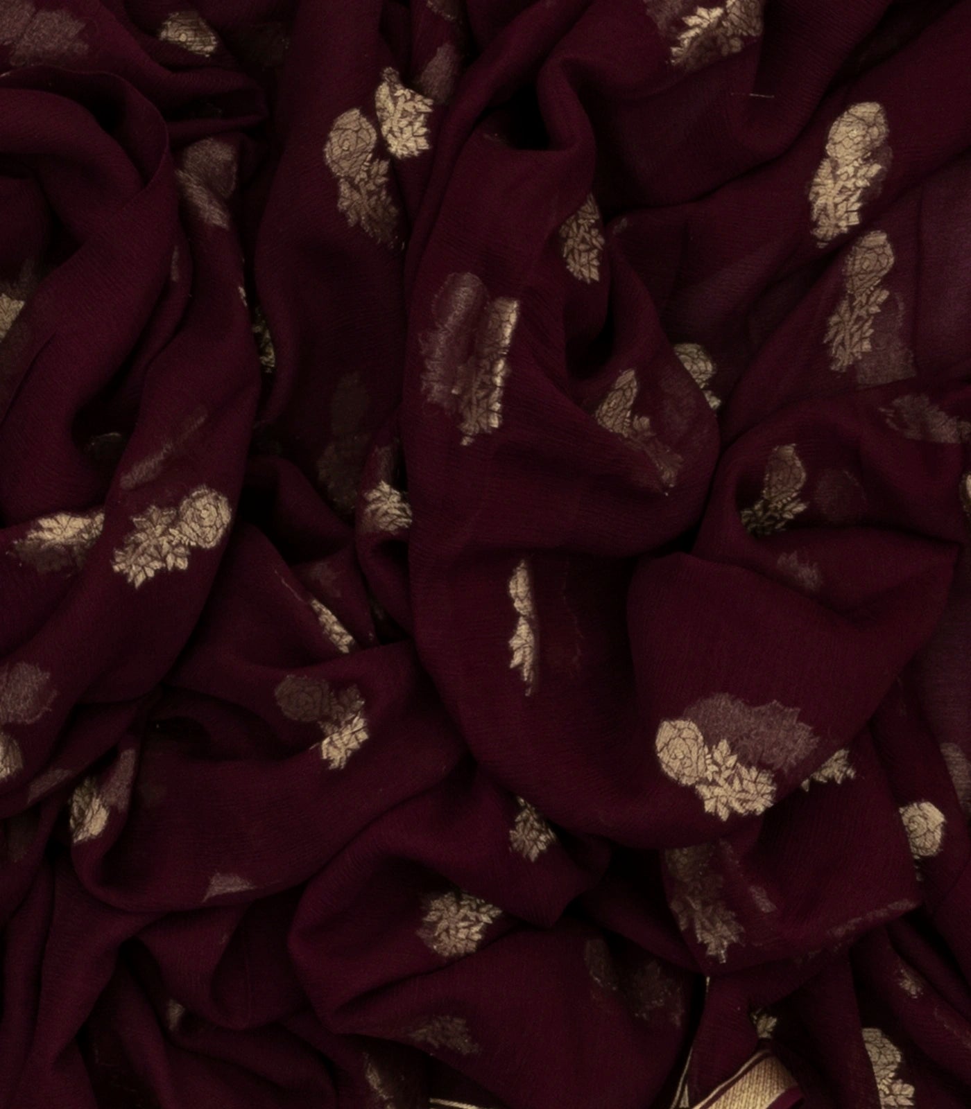 Maroon Mysore Georgette Silk Saree With Floral Buttas-MS2977