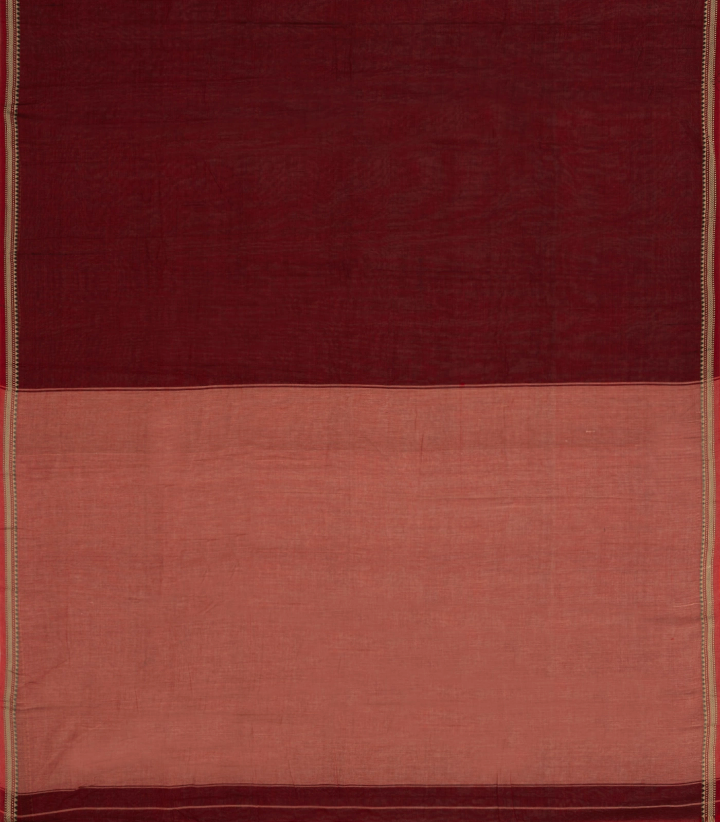 This woven chirala cotton saree is filled with plain maroon body along with contrast border and pallu