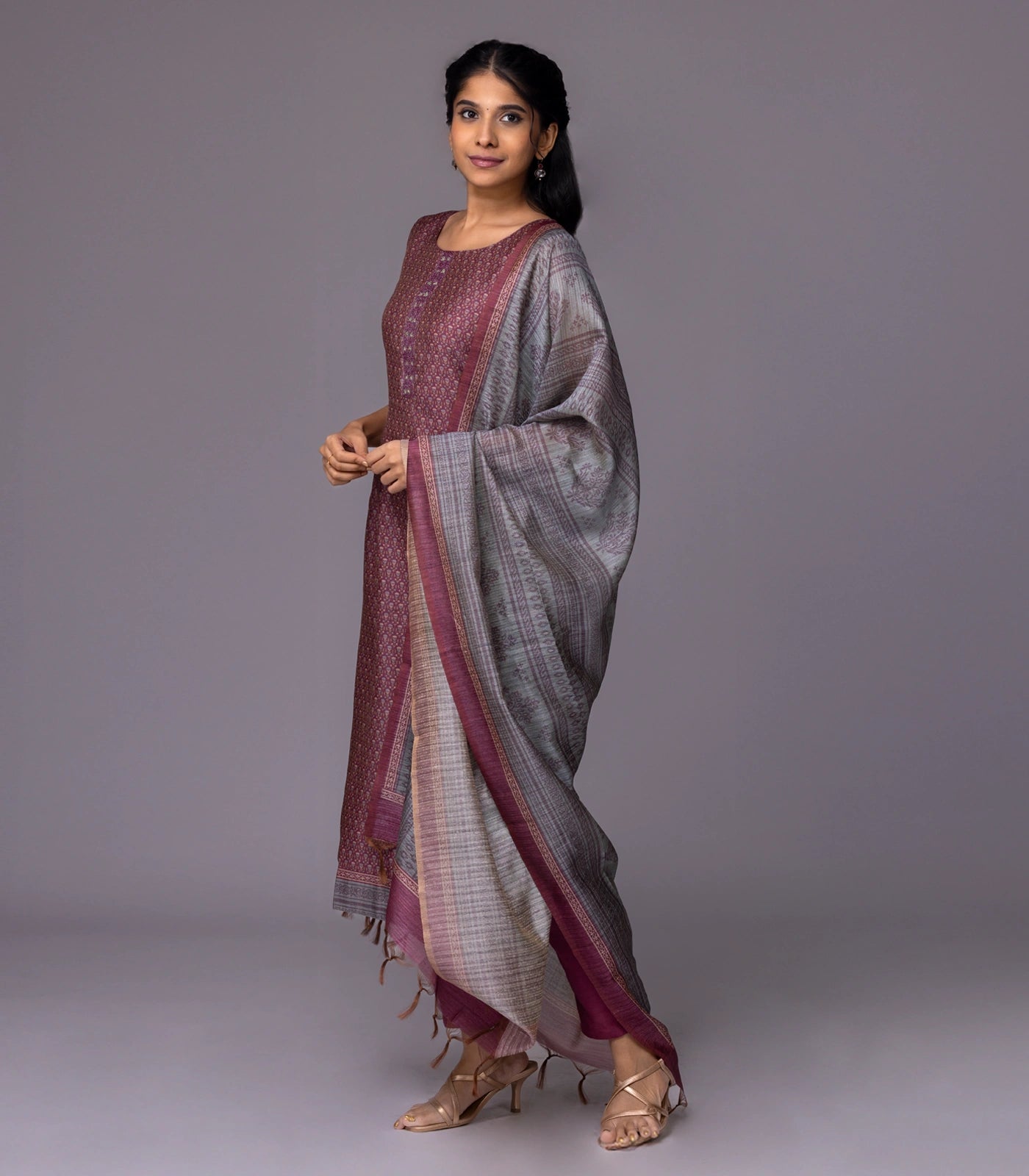 Mauve & Grey Festive Kurta Set-RC5571