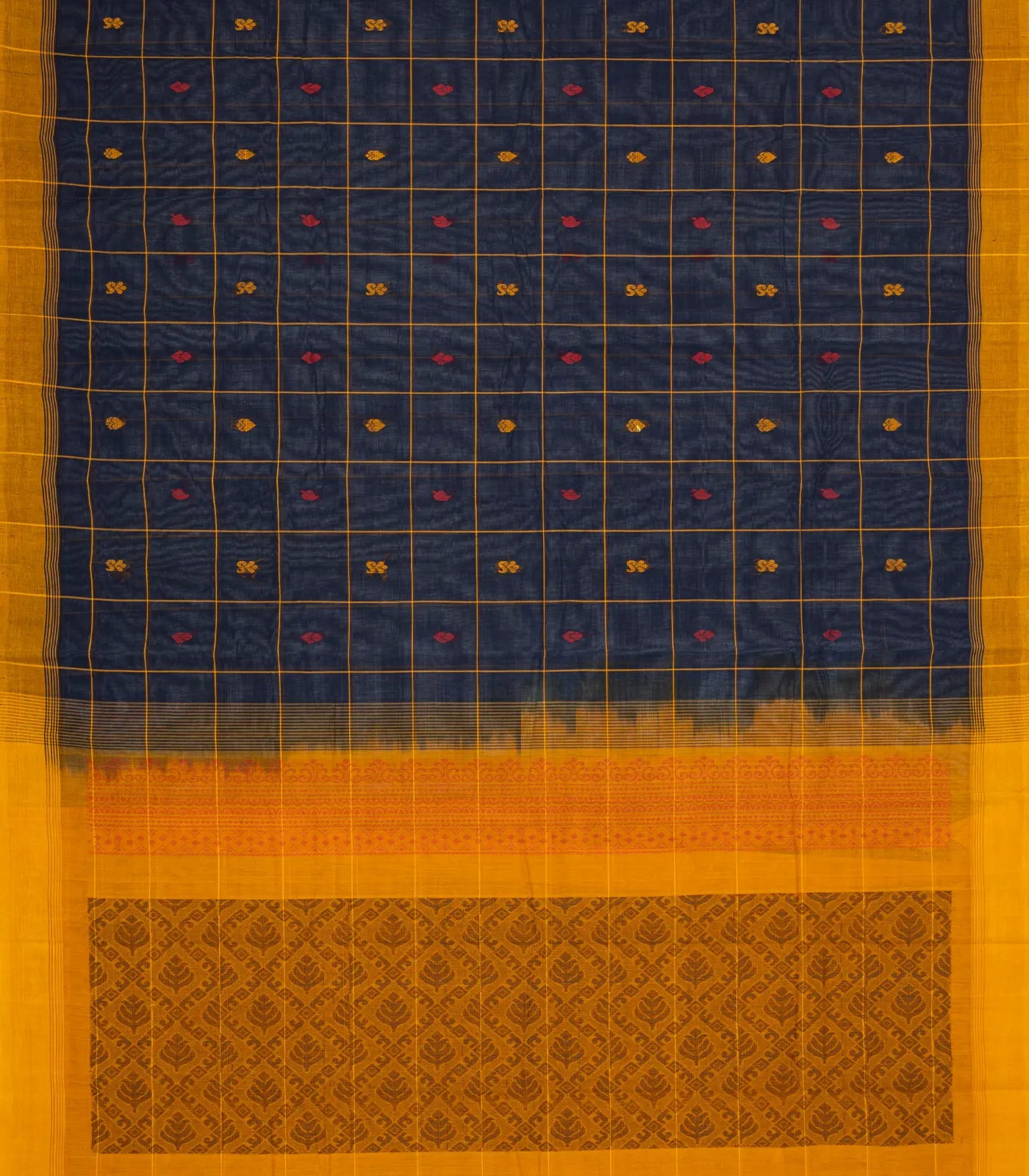 Midnight Blue Handloom Rasipuram Cotton Saree With Checks & Buttas-RA2507